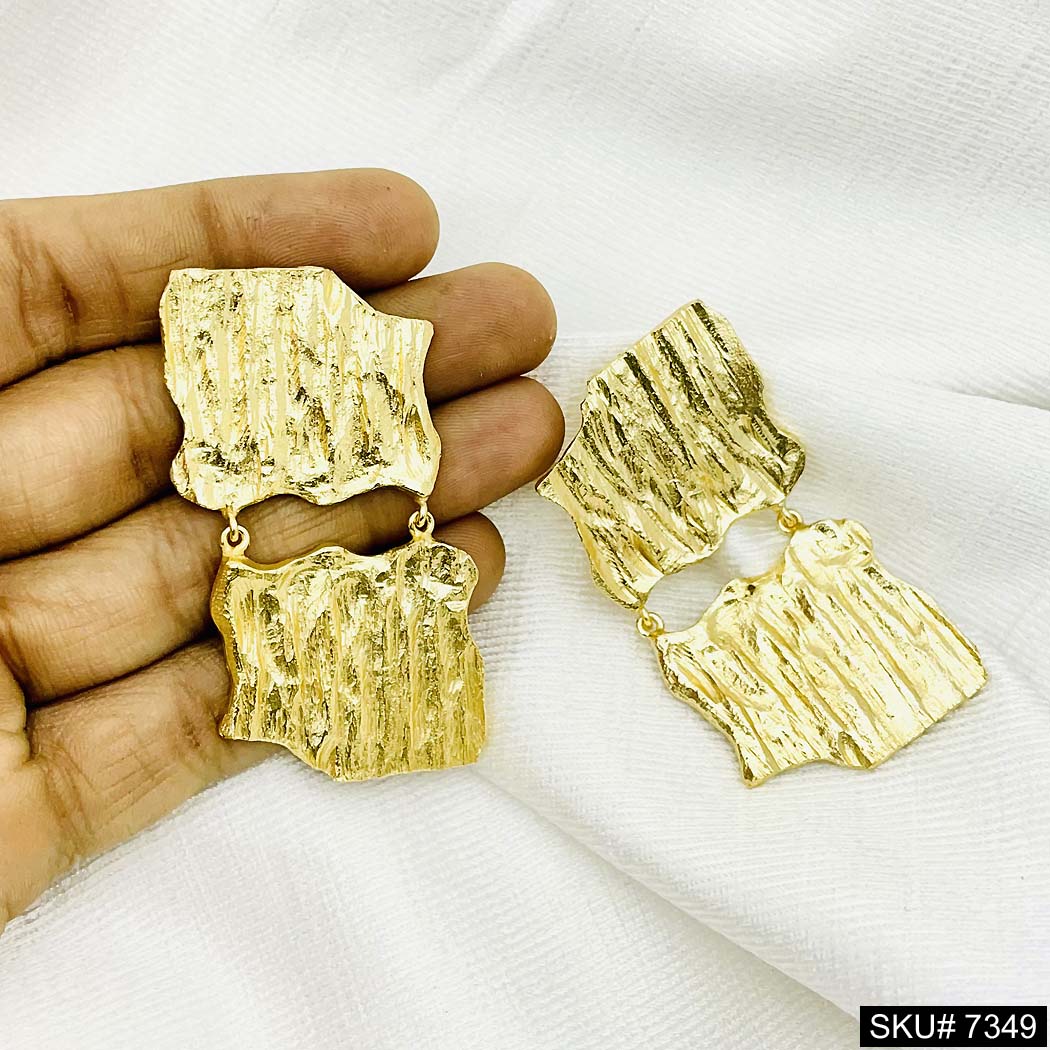 Gold plated Handmade Paper Textured Hanging Earings SKU#7407