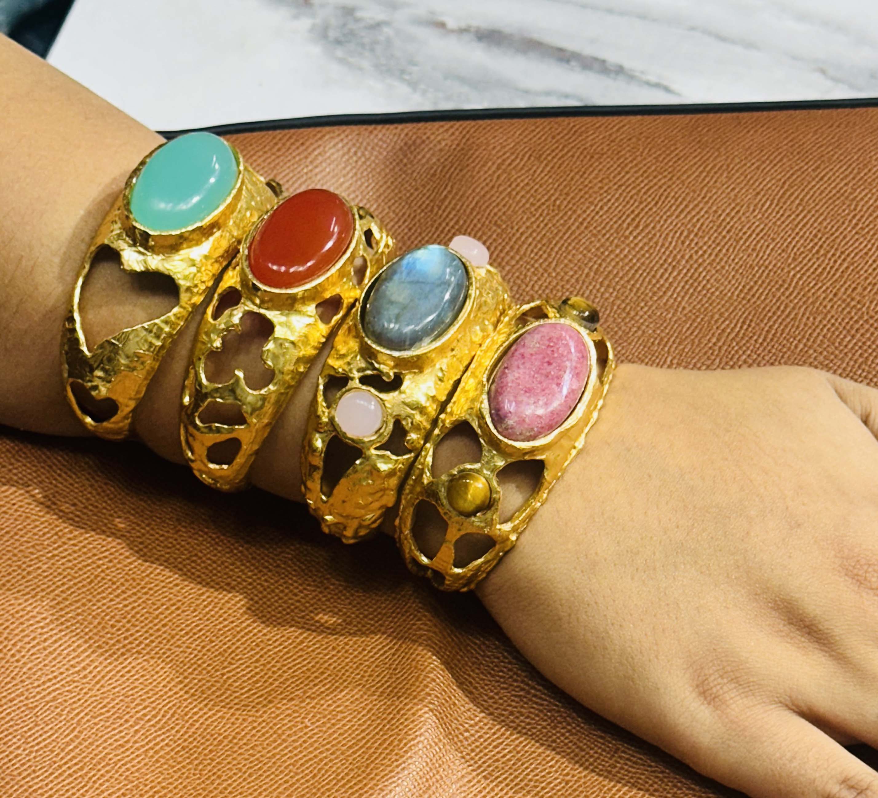 18 K Gold Plated Gemstone Cuff Bangle