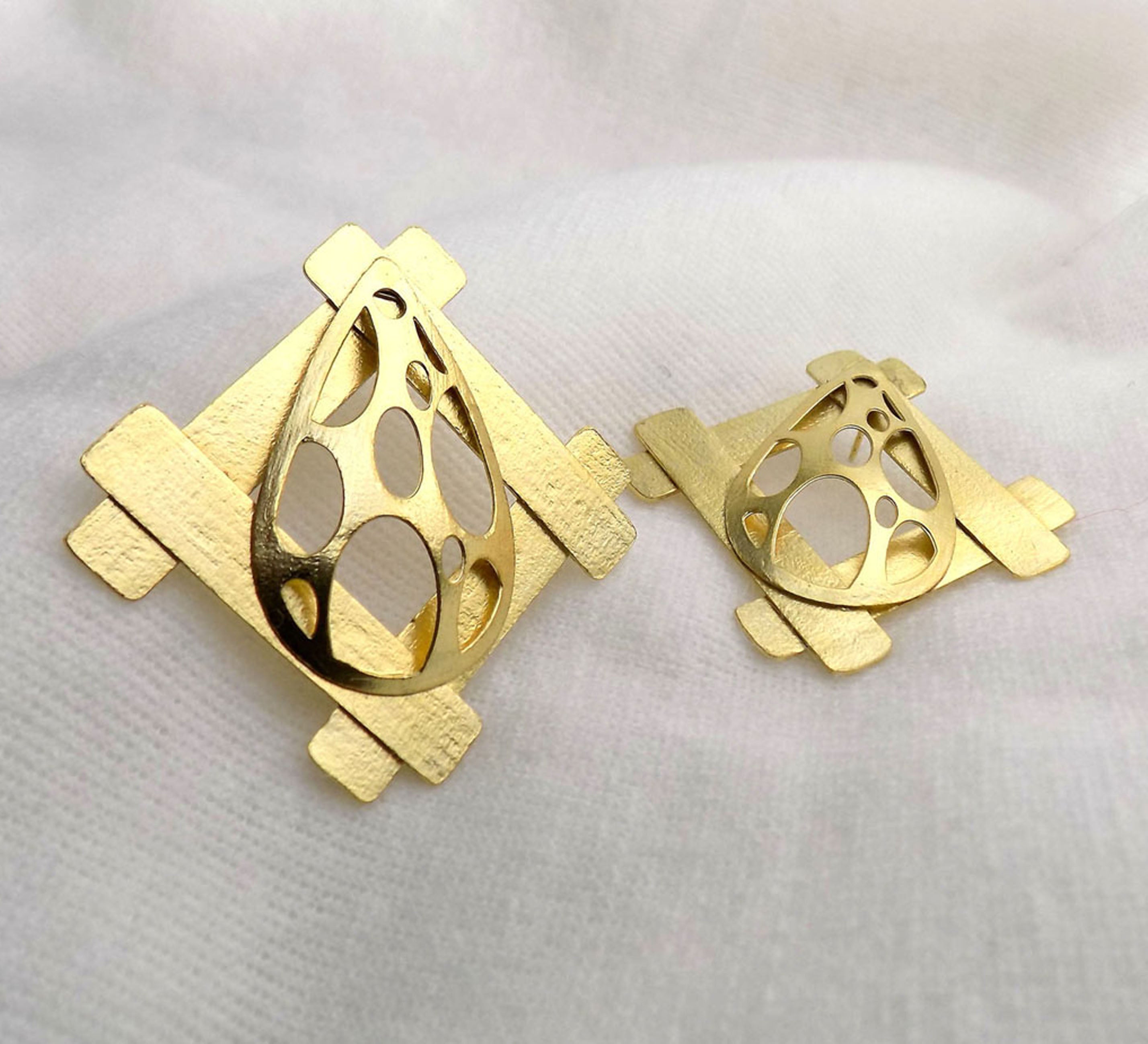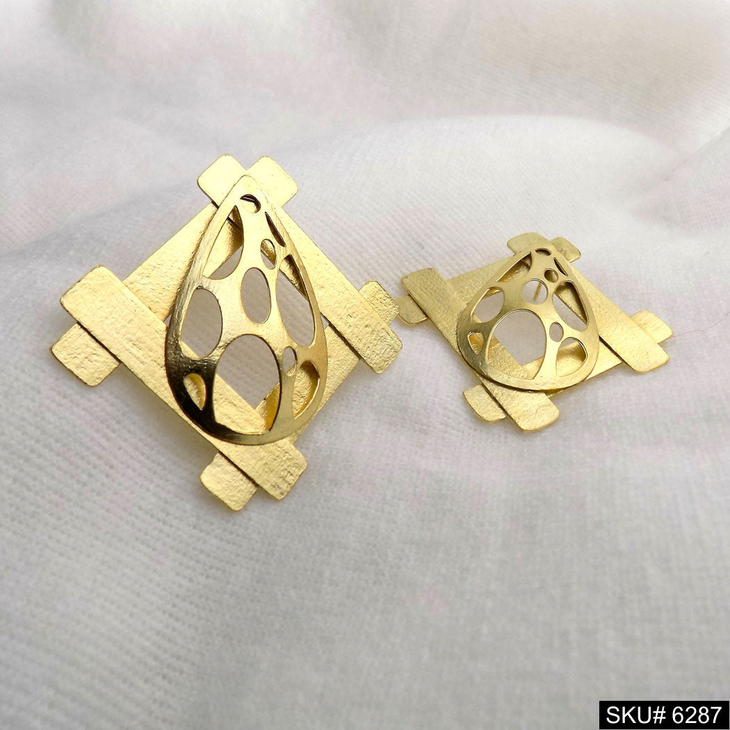 18K Gold Plated Texture Geometrical Earring SOKU# 6287