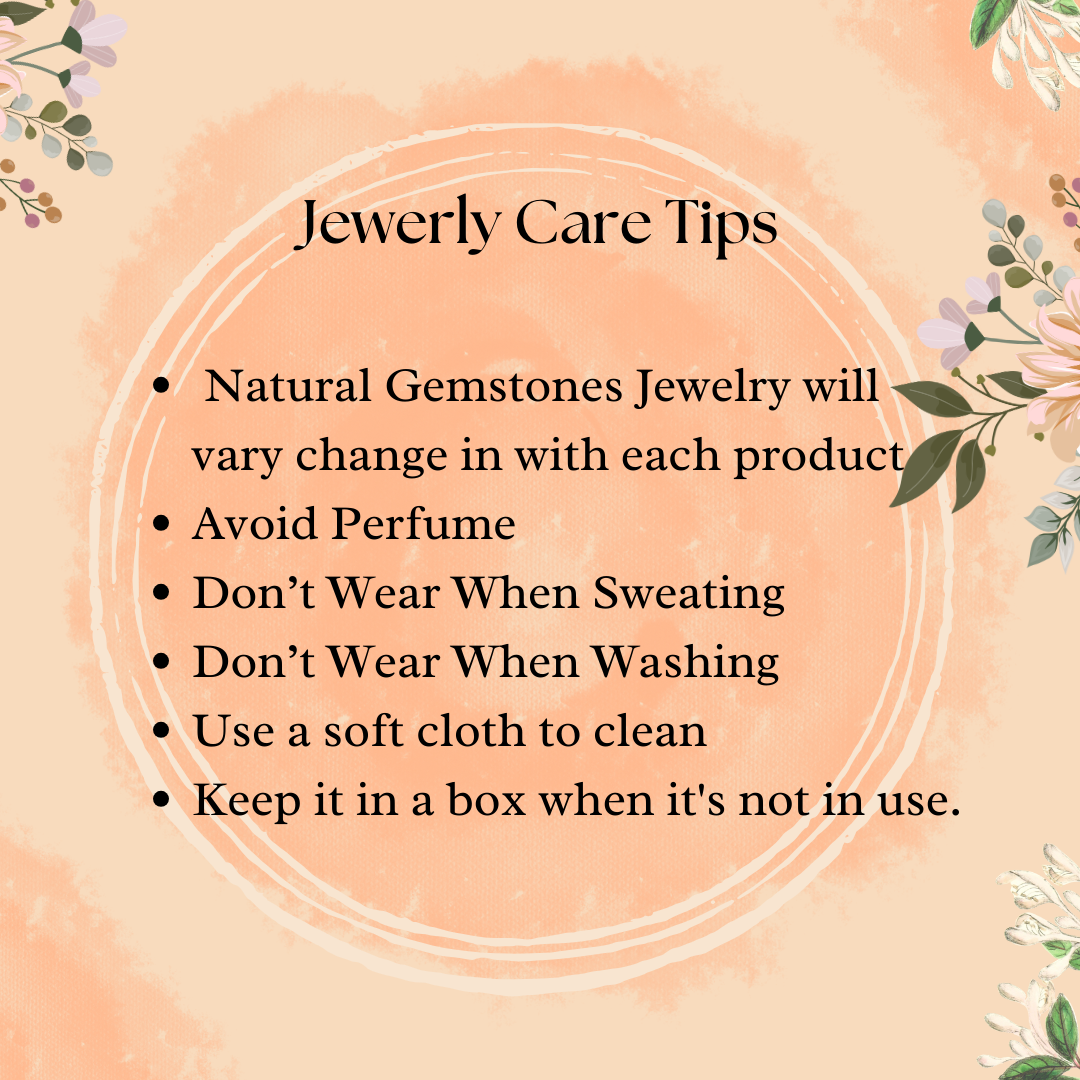 Material: Brass (non allergic )Wipe your jewelry with a soft cloth after every useAlways store your jewelry in a flat box to avoid accidental scratchesKeep sprays and perfumes away from your jewelryDo not soak your jewelry in waterClean your jewelry using a soft brush, dipped in jewelry cleaning solution only