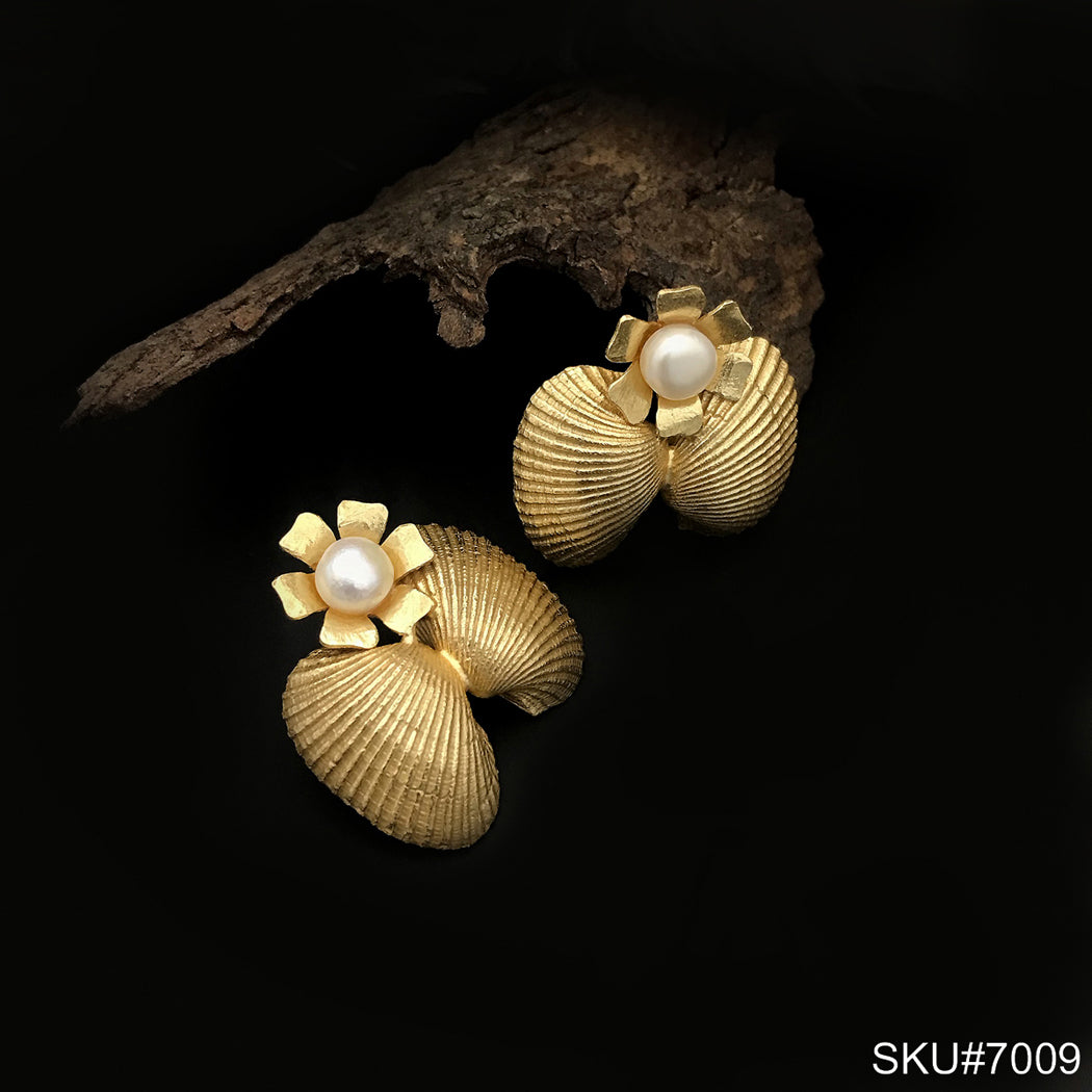 Gold plated Pearl Flower Shell Statement Style Ear Wire Earring SKU7009