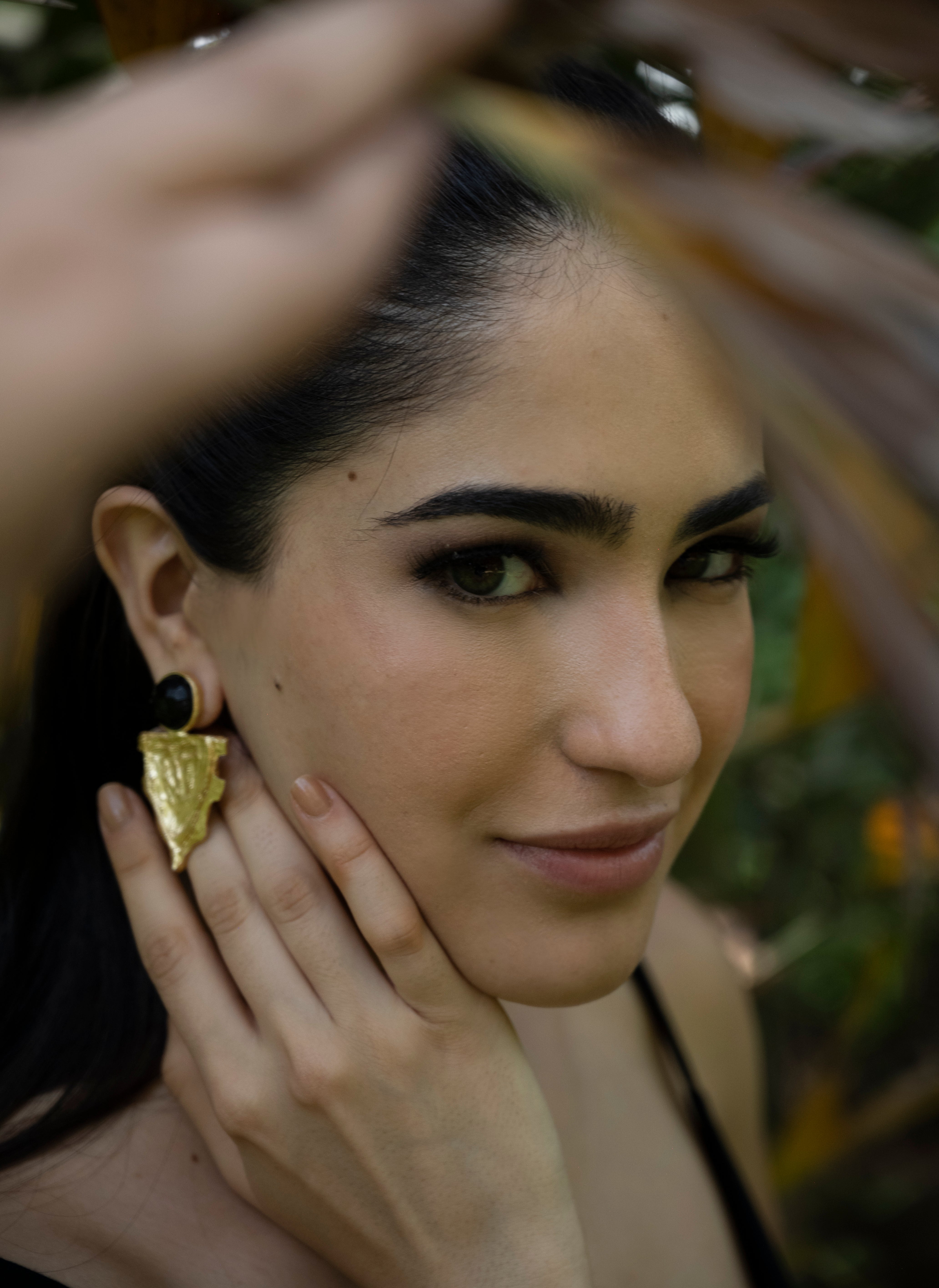 Material: Brass (non allergic )Wipe your jewelry with a soft cloth after every useAlways store your jewelry in a flat box to avoid accidental scratchesKeep sprays and perfumes away from your jewelryDo not soak your jewelry in waterClean your jewelry using a soft brush, dipped in jewelry cleaning solution only