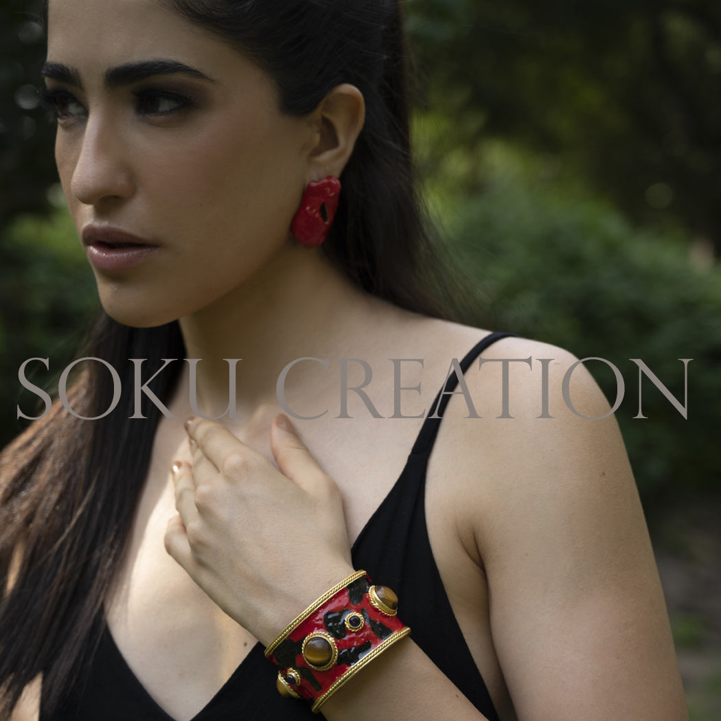 Material: Brass (non allergic )Wipe your jewelry with a soft cloth after every useAlways store your jewelry in a flat box to avoid accidental scratchesKeep sprays and perfumes away from your jewelryDo not soak your jewelry in waterClean your jewelry using a soft brush, dipped in jewelry cleaning solution only