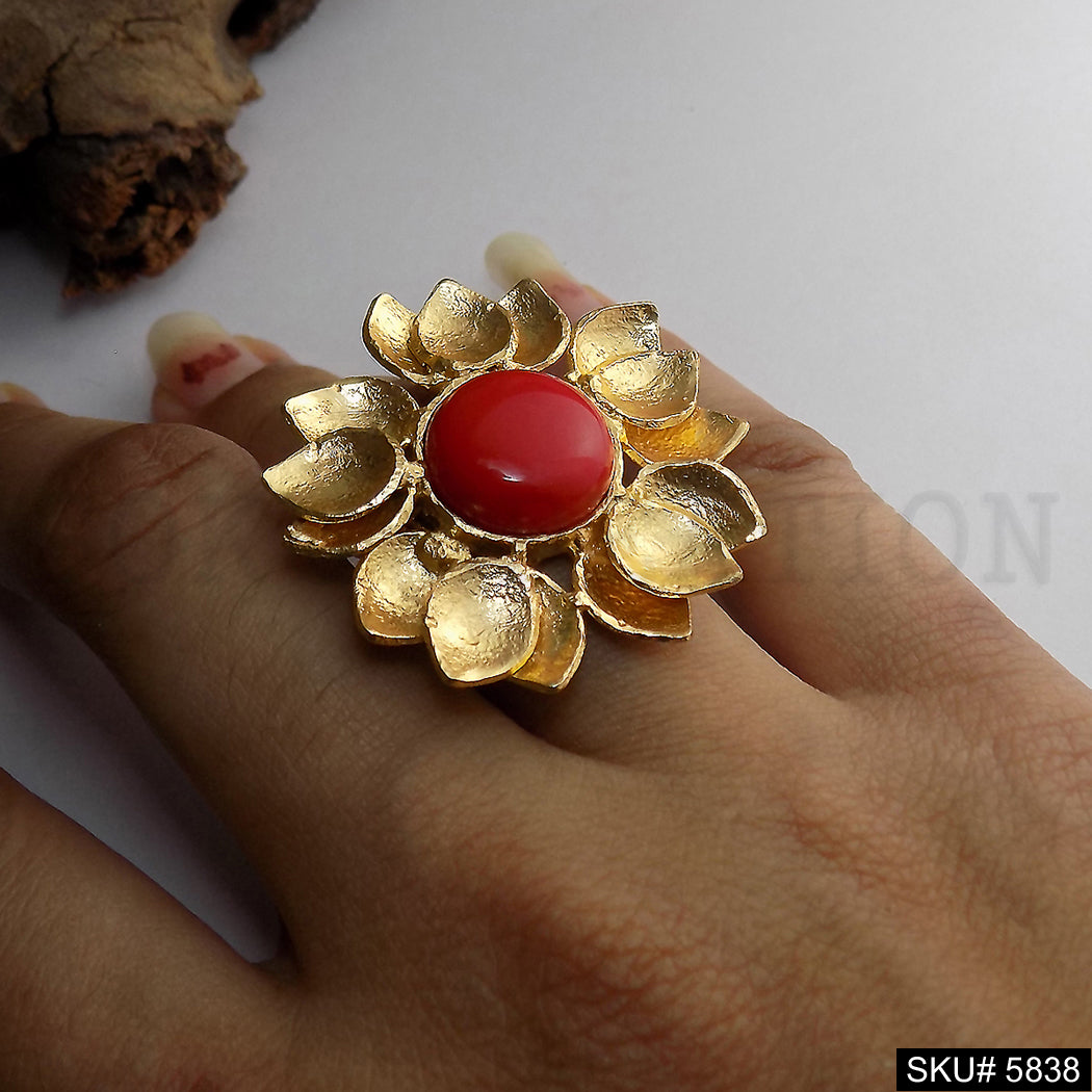 Gold Plated Big Flower Designer Cocktail Adjustable Ring SKU5838
