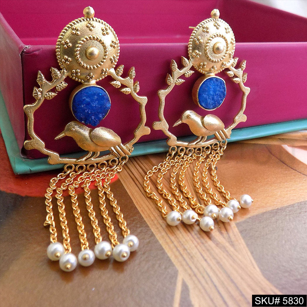 Gold plated Bird Design with Multi Chain Drop and Dangle Earring SKU5830
