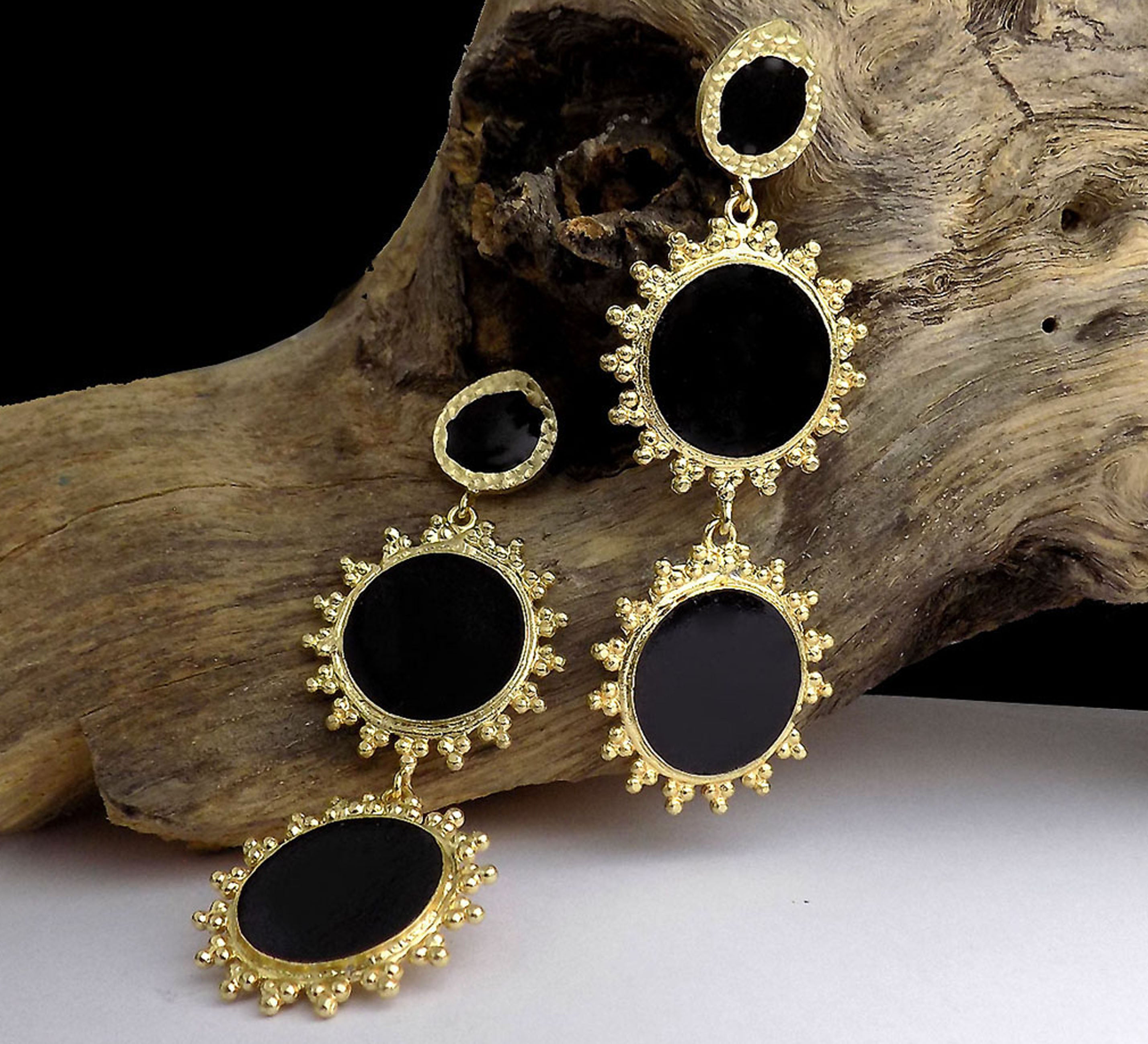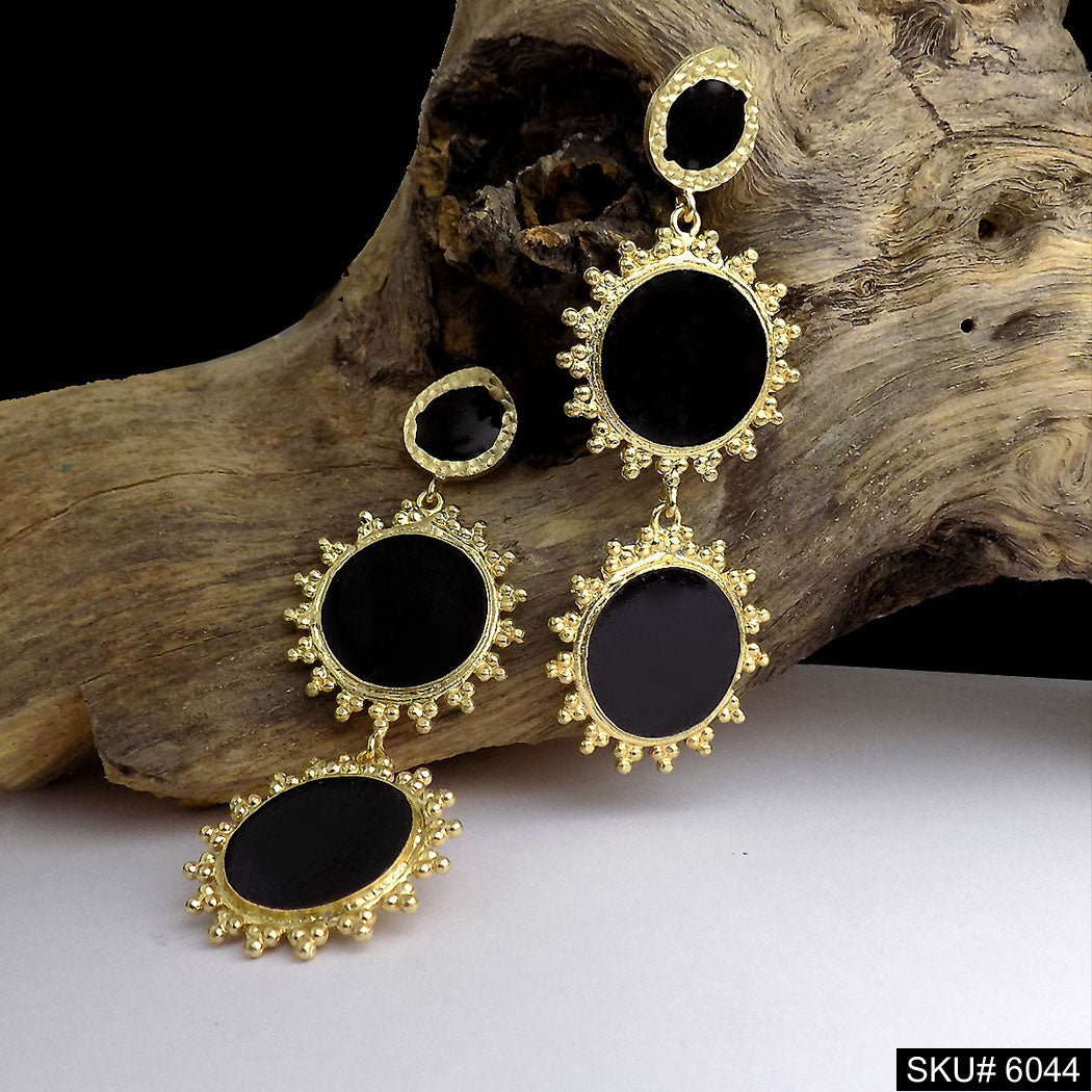 Gold plated Black Enamel Design Drop and Dangle Earring SKU6044