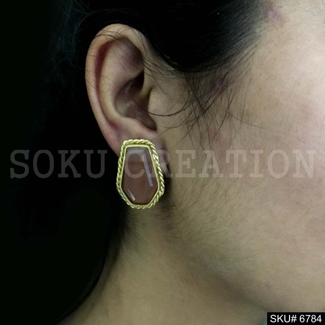 Gold Plated Brown stone Twisted Wire Stud Earrings SKU6784