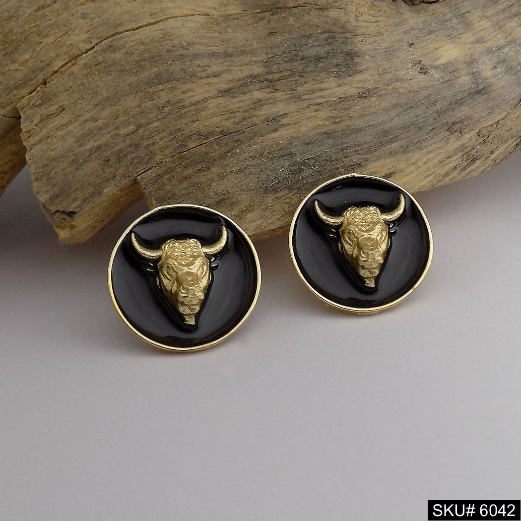 Gold plated Bull Design Handmade Stud Earring SKU6042