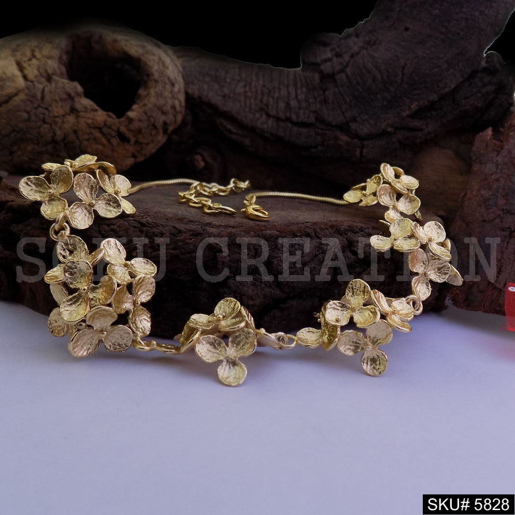 Gold Plated Chain Necklace with Full of Flower Necklace SKU5828