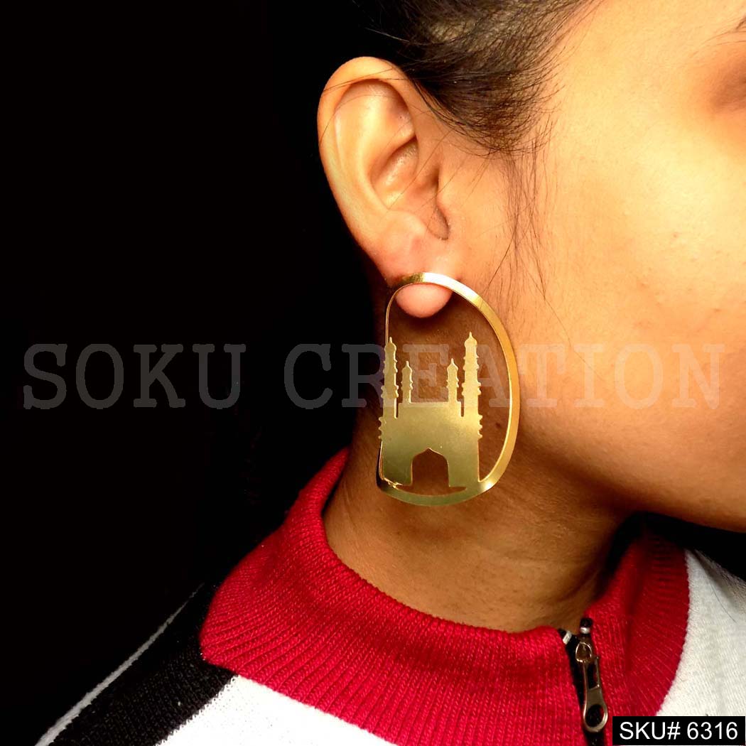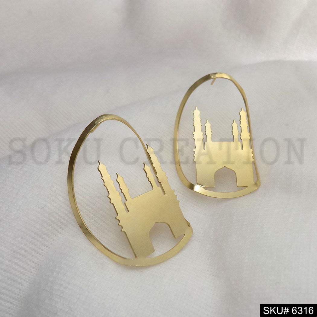 Gold plated Char Minar Style of Big Stud Earring SKU6316