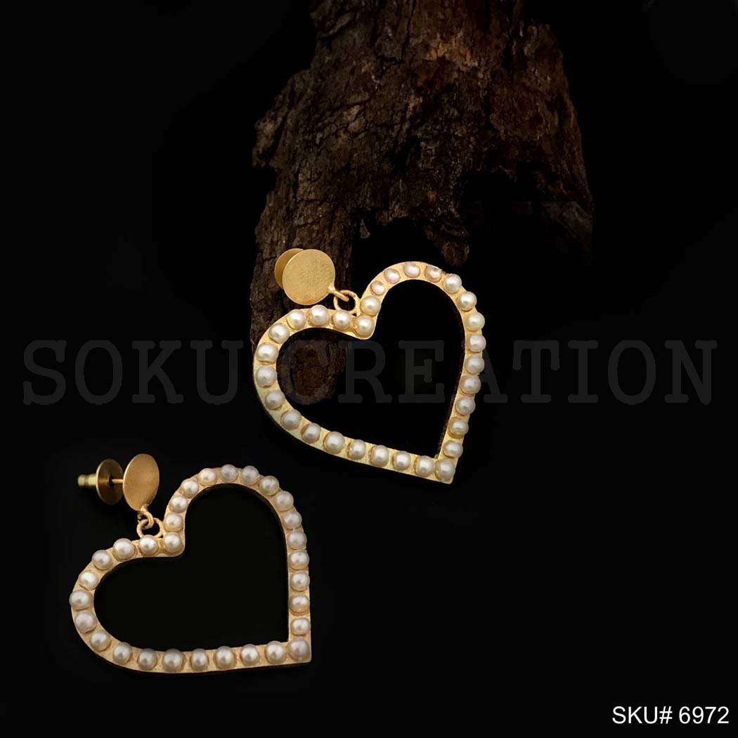 Gold plated Delicate Heart Shape Drop and Dangle Earrings SKU6972