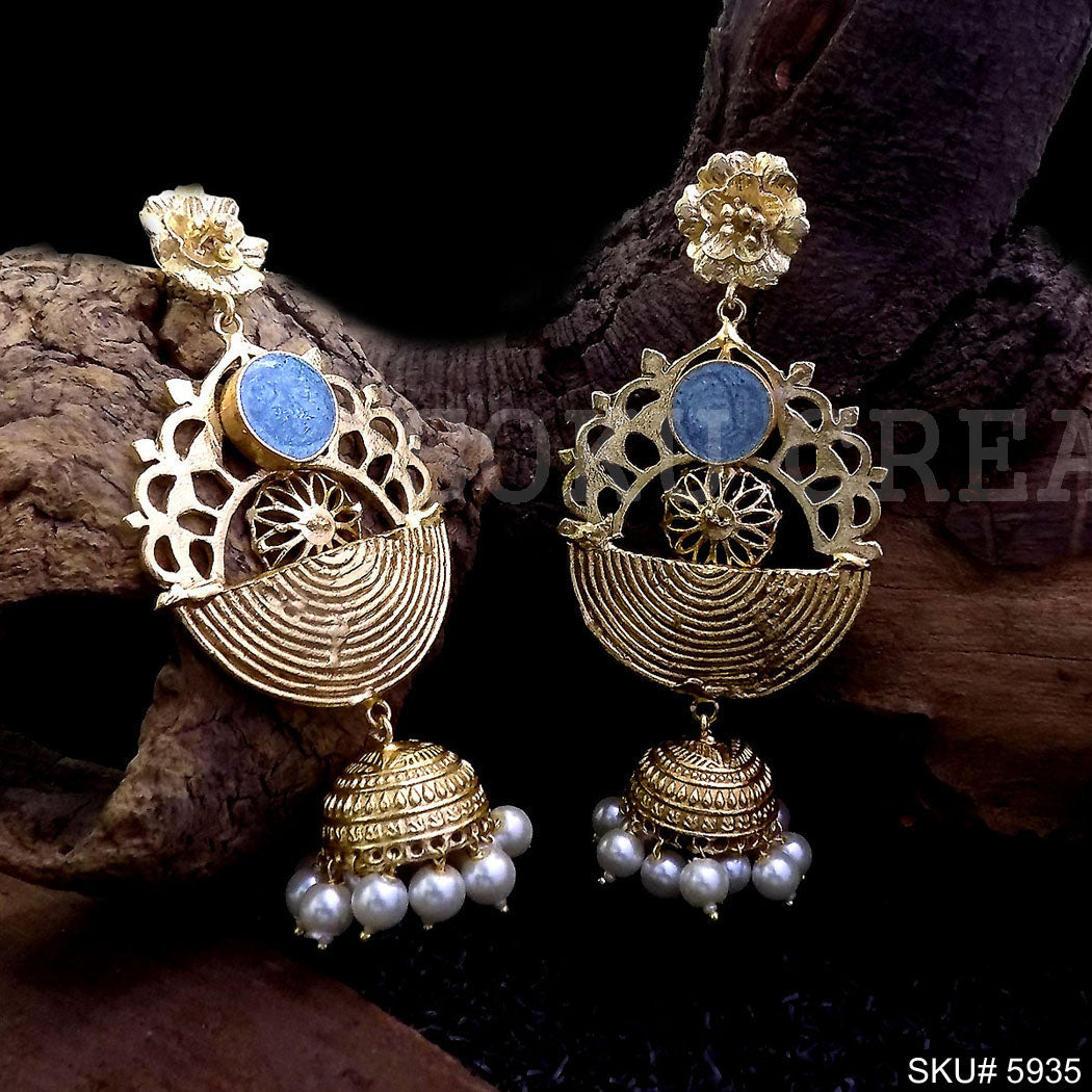 Gold plated Designer Drop and Dangle Jhumki Earring SKU5935