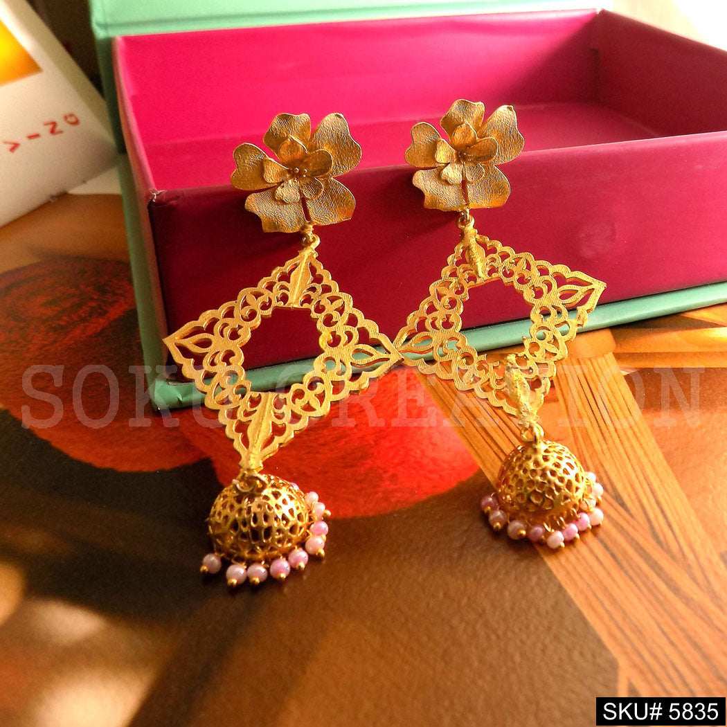 Gold plated Designer Drop and Dangle Jhumki Earring SKU5835