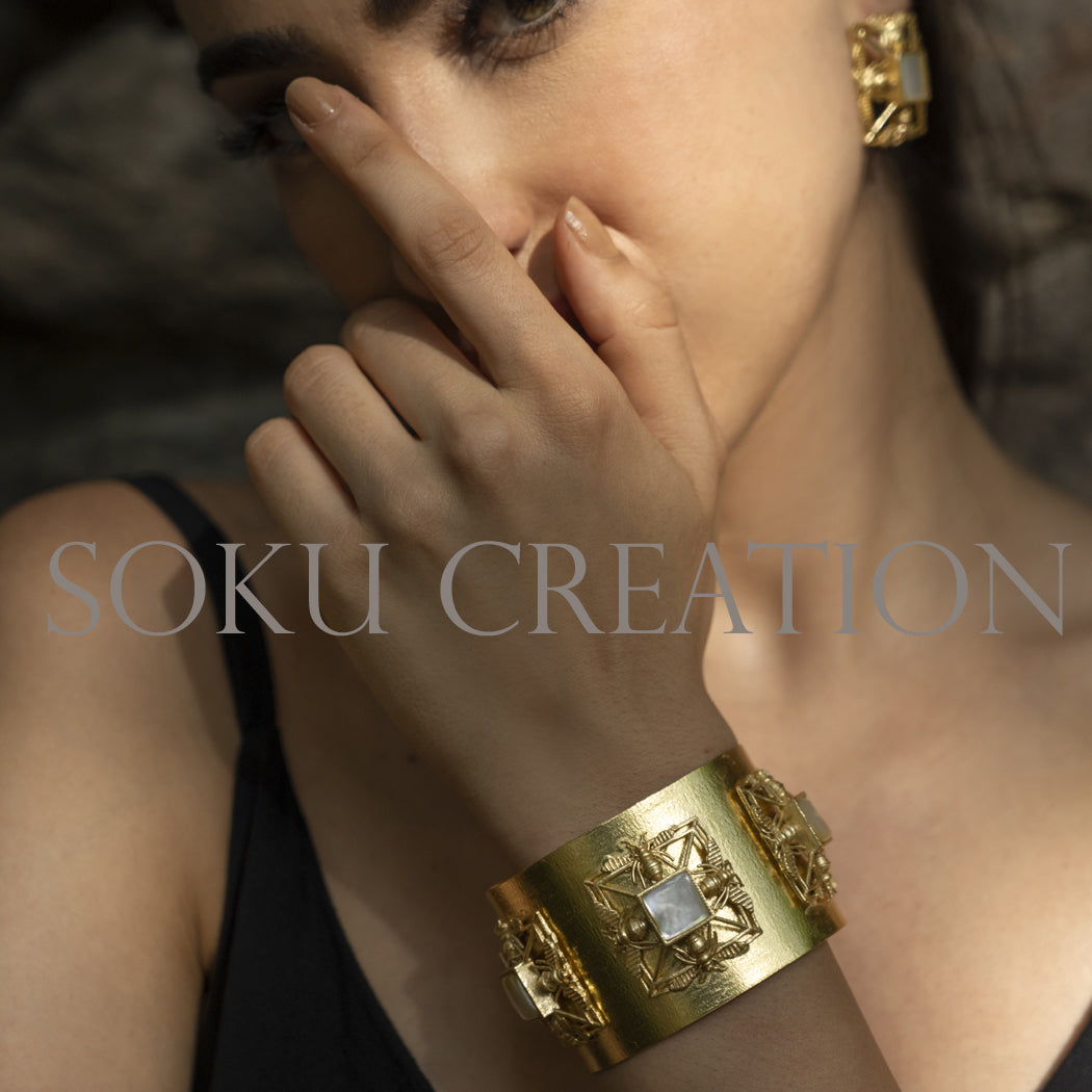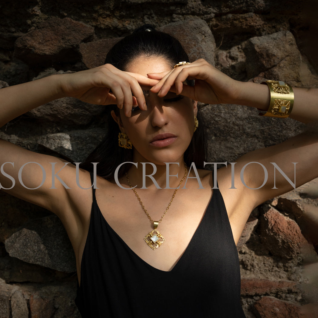 Material: Brass (non allergic )Wipe your jewelry with a soft cloth after every useAlways store your jewelry in a flat box to avoid accidental scratchesKeep sprays and perfumes away from your jewelryDo not soak your jewelry in waterClean your jewelry using a soft brush, dipped in jewelry cleaning solution only