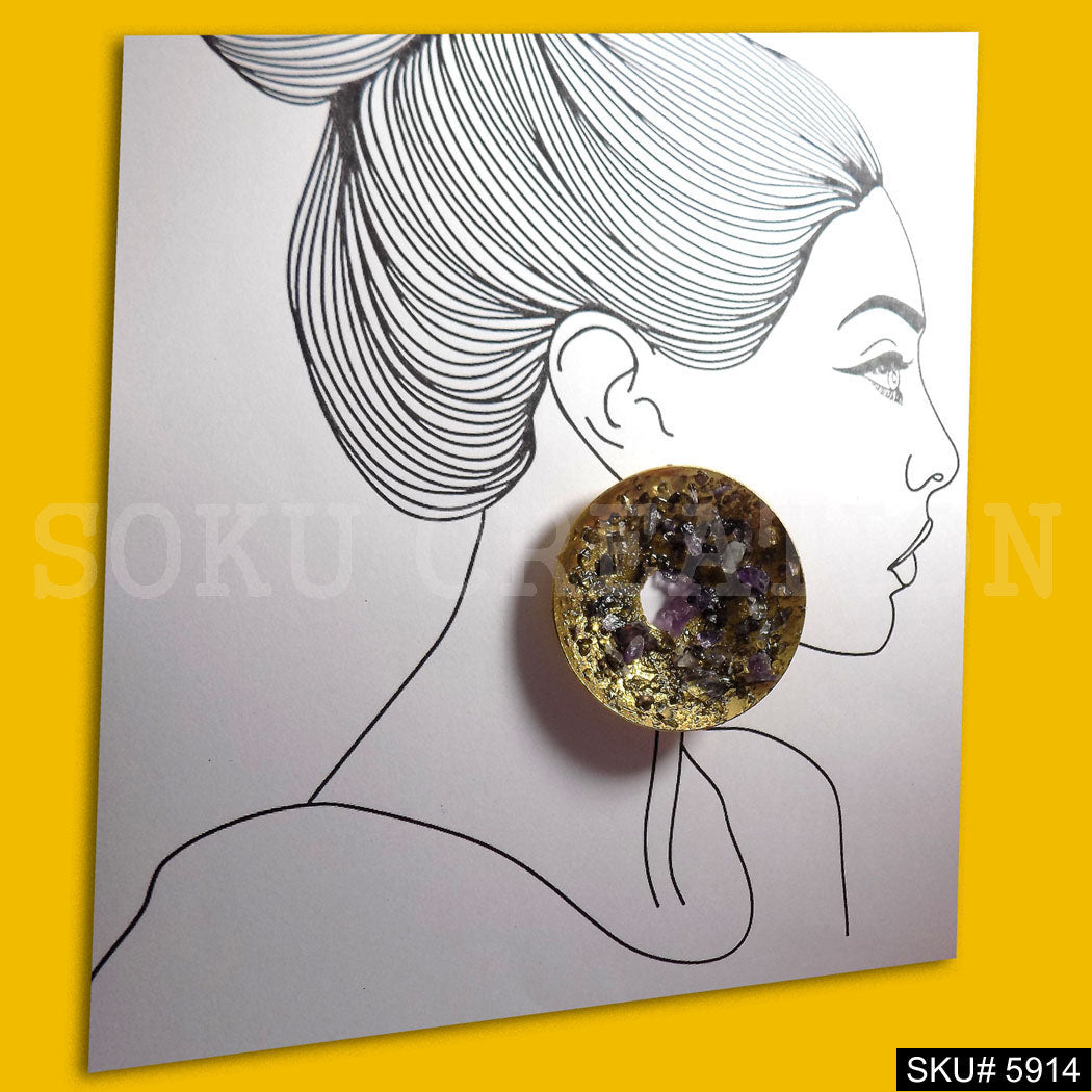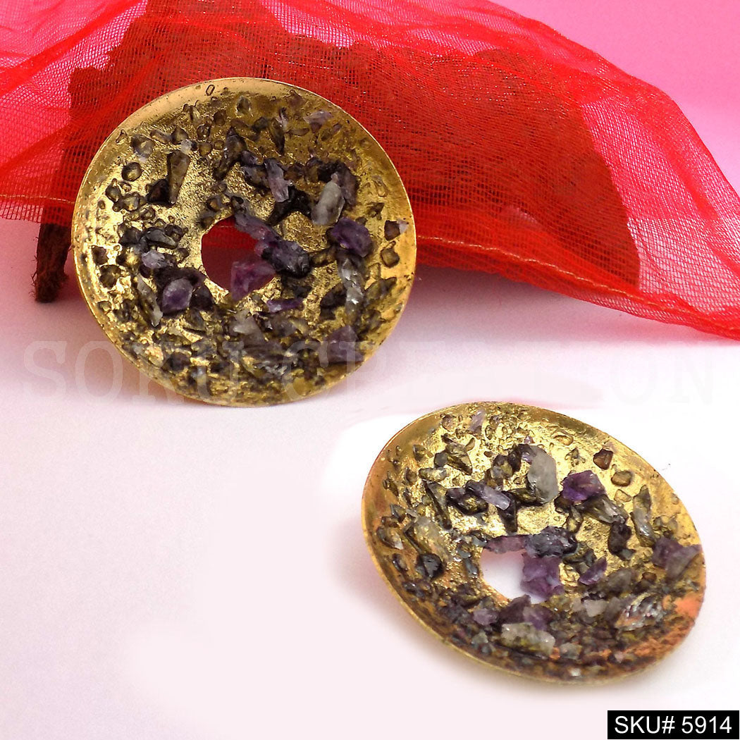 Gold plated Designer Gemstone Rounded Style Design Big Stud Earring SKU5914