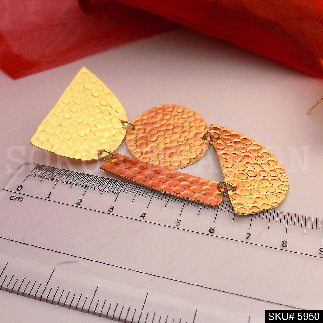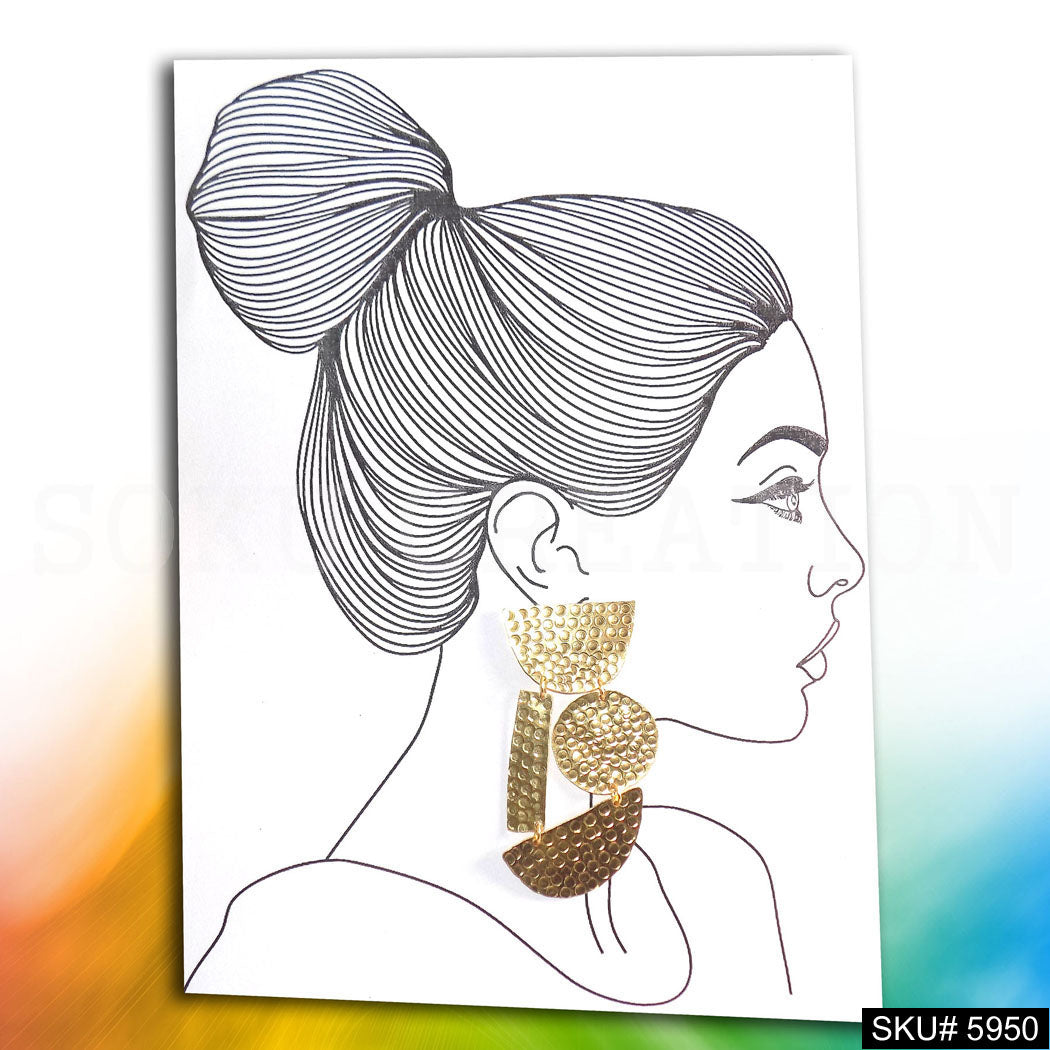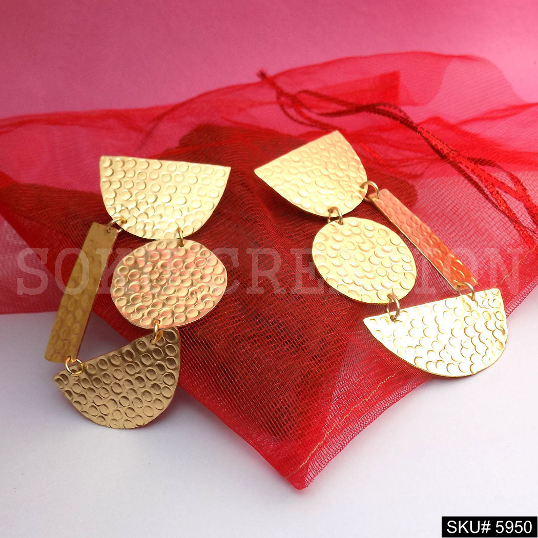 Gold plated Designer Hammered Statement Drop and Dangle Earring SKU5950