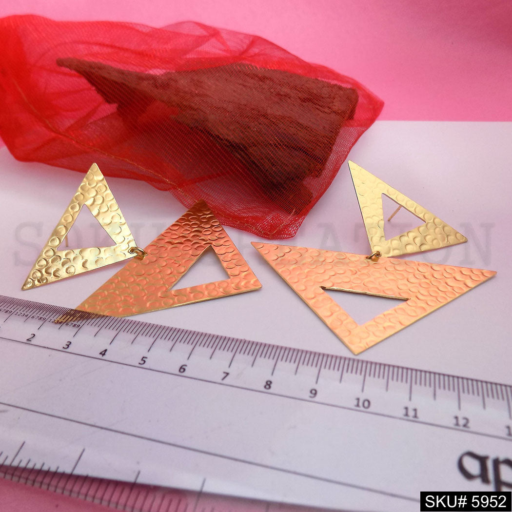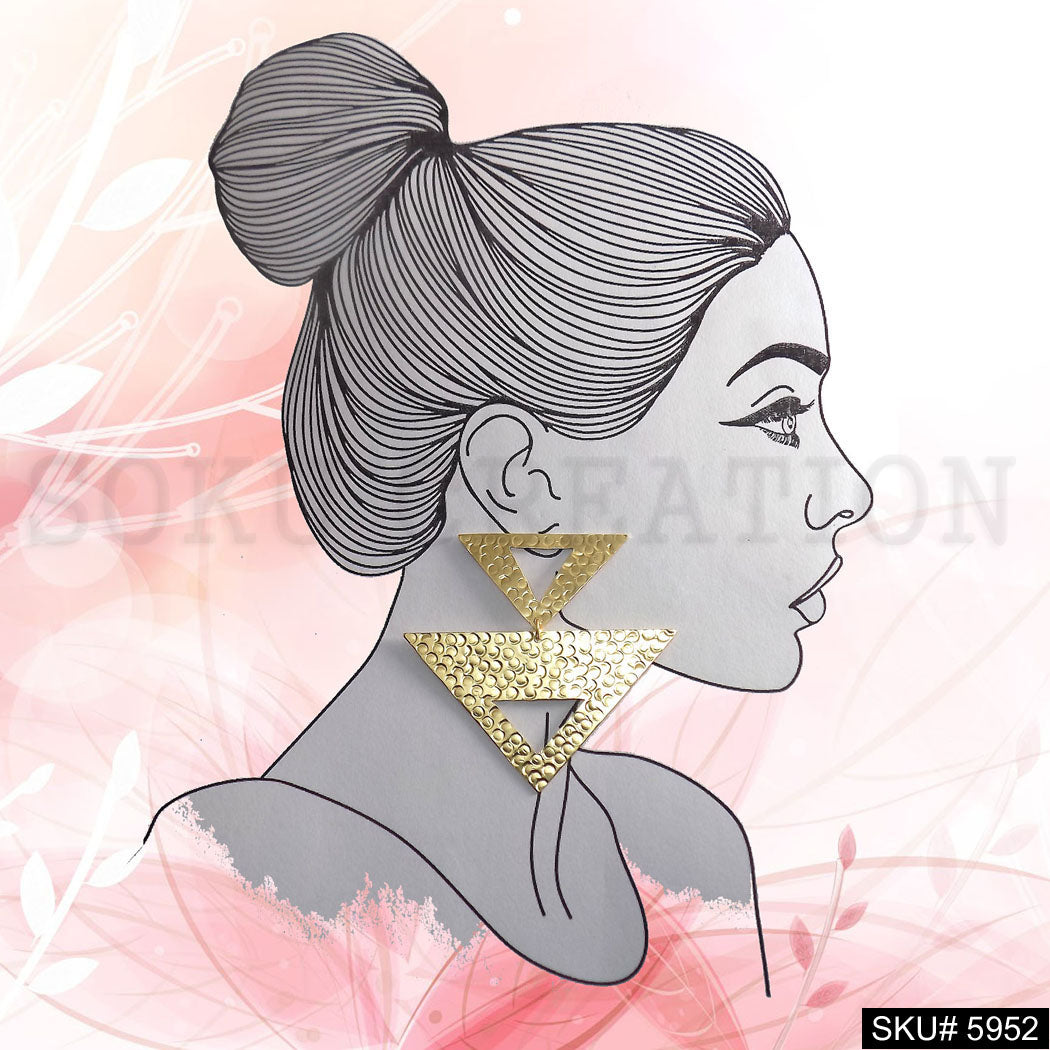 Gold plated Designer Hammered Statement Drop and Dangle Earring SKU5952