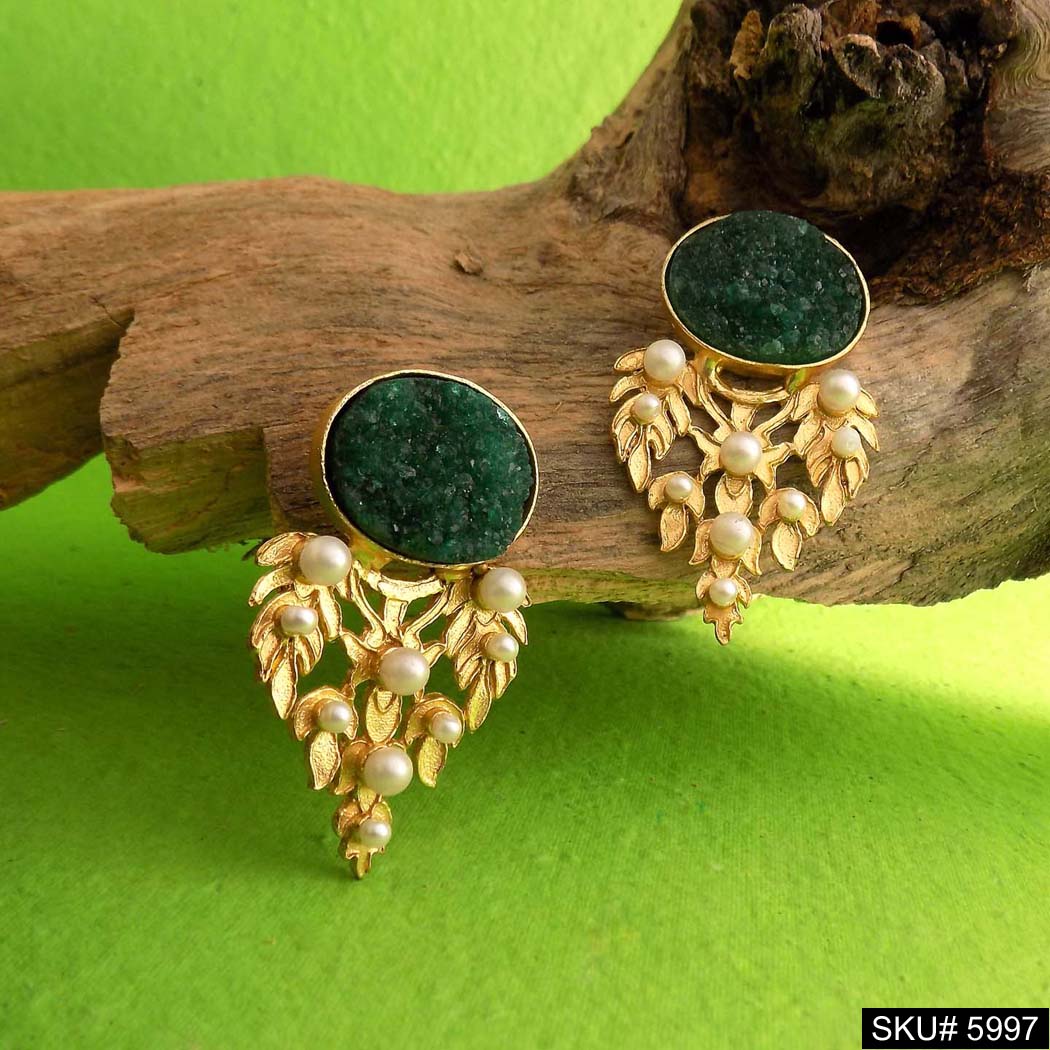 Gold plated Designer Handmade Big Stud Earring SKU5997