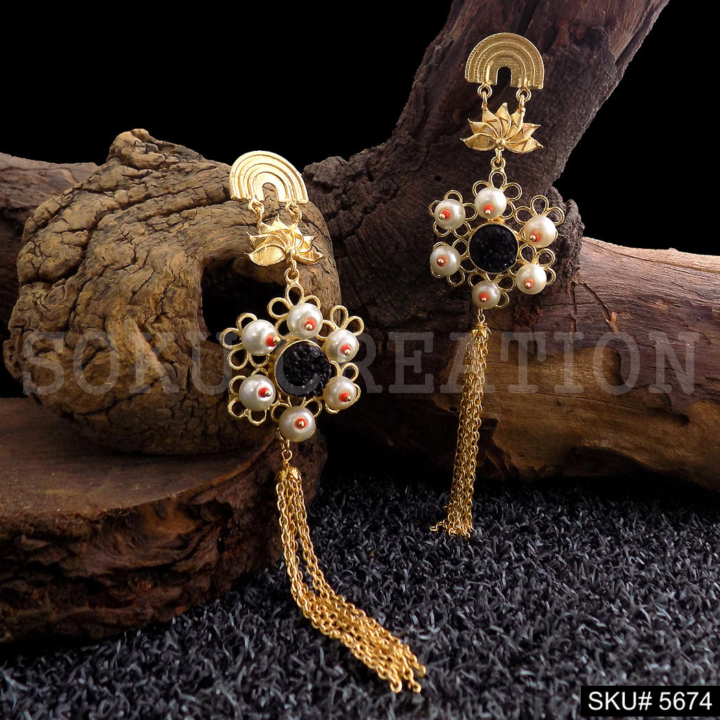 Gold plated Designer Long with Chain Drop & Dangle Earring SKU5674