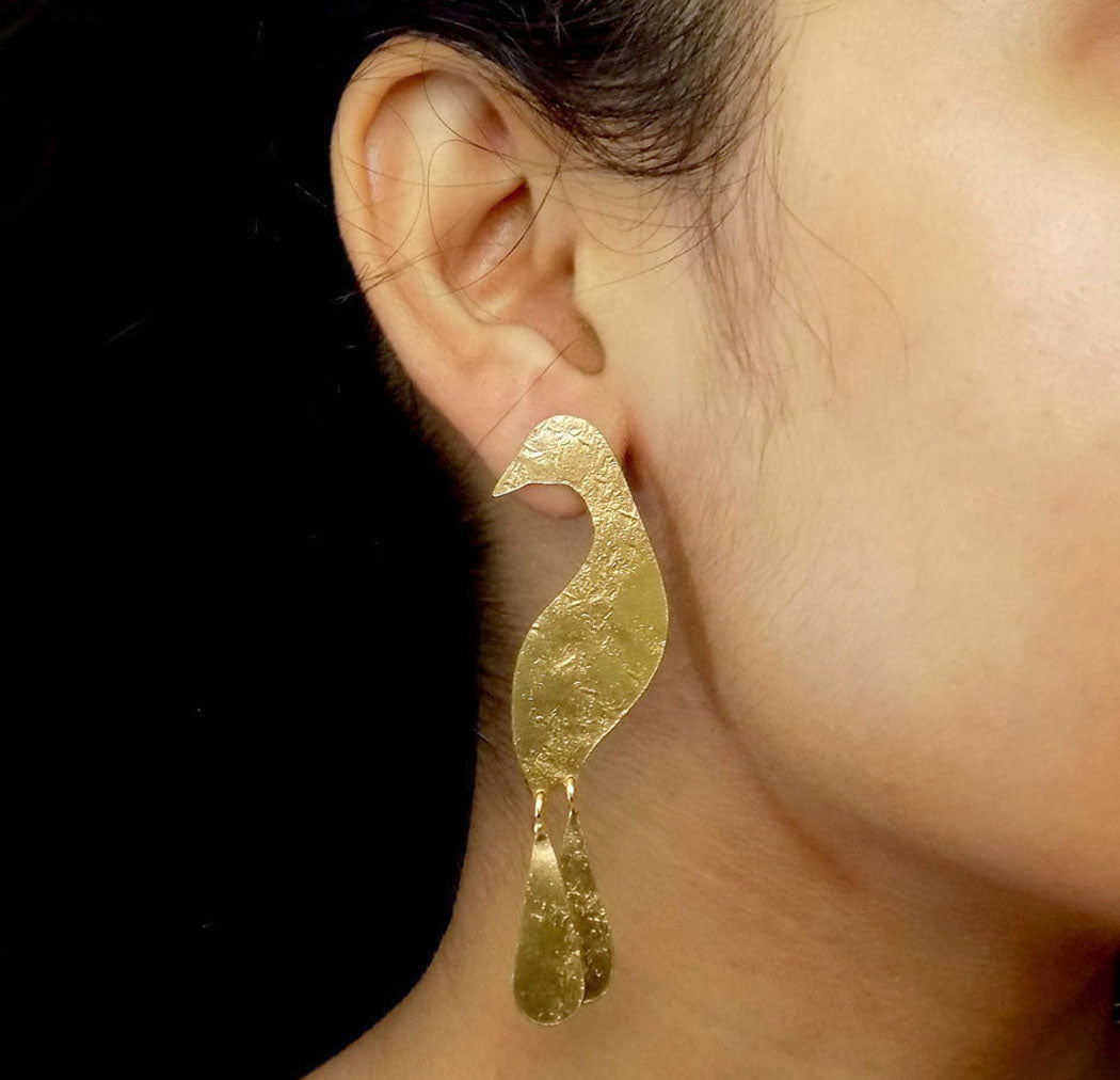 Gold plated Designer Peacock Style Big Stud Earring SKU6139