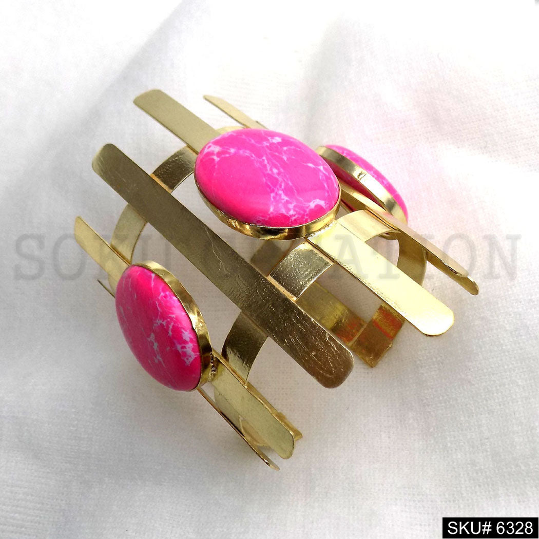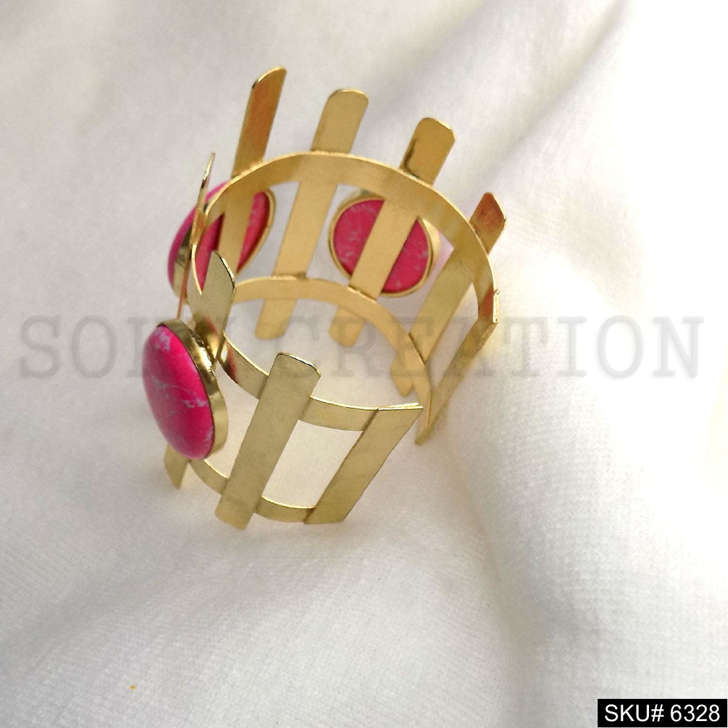 Gold Plated Designer Pink Gemstone Handmade Design of Cuff SKU6328