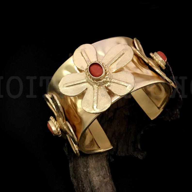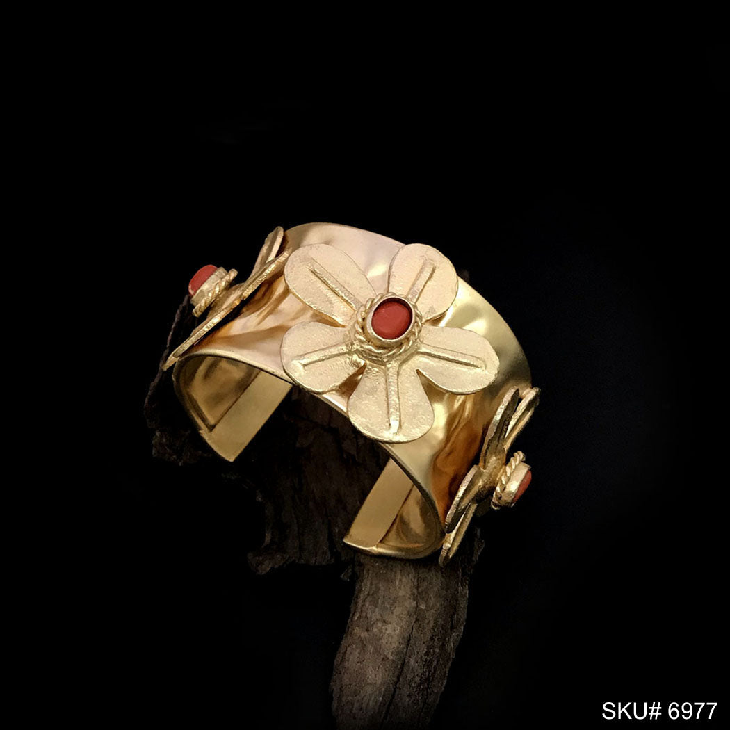 Gold Plated Flower With Red Stone Design of Cuff SKU6977