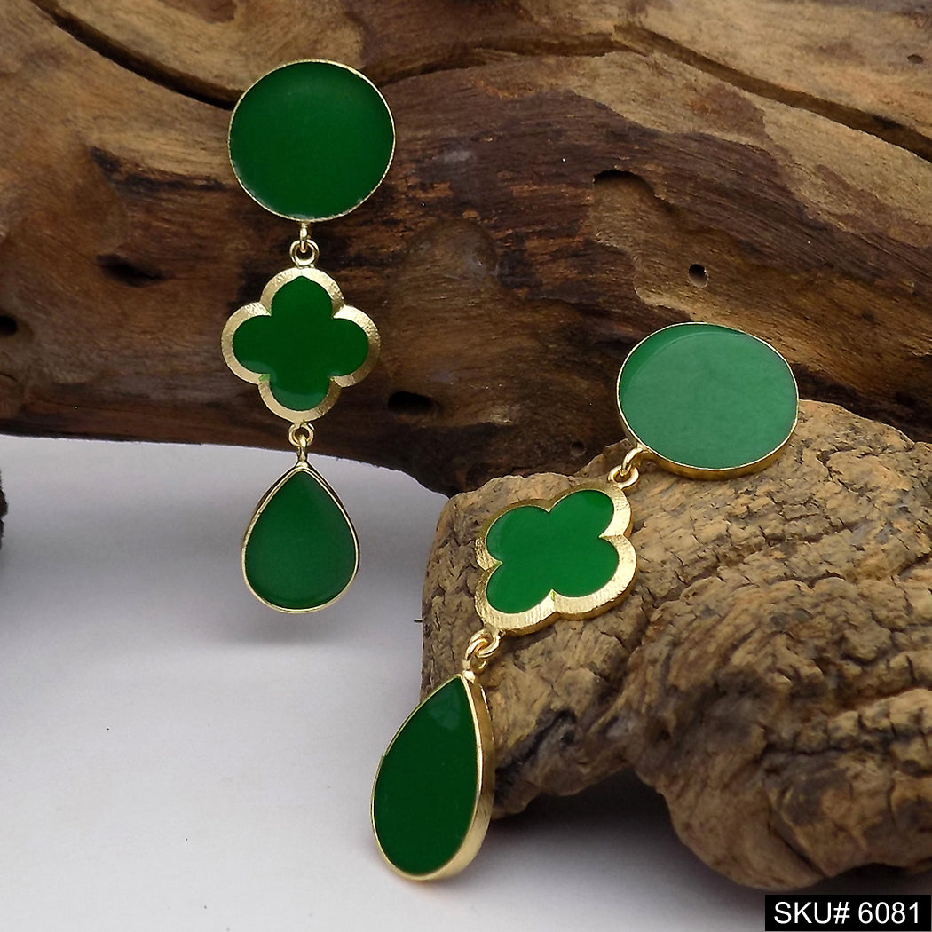Gold plated Green Enamel Flower Style Design Drop and Dangle Earring SKU6081