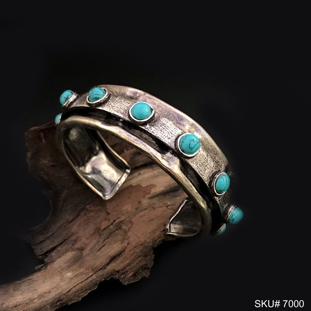 Metal Plated Hammered Design of Cuff With Turquoise Stone SKU7000