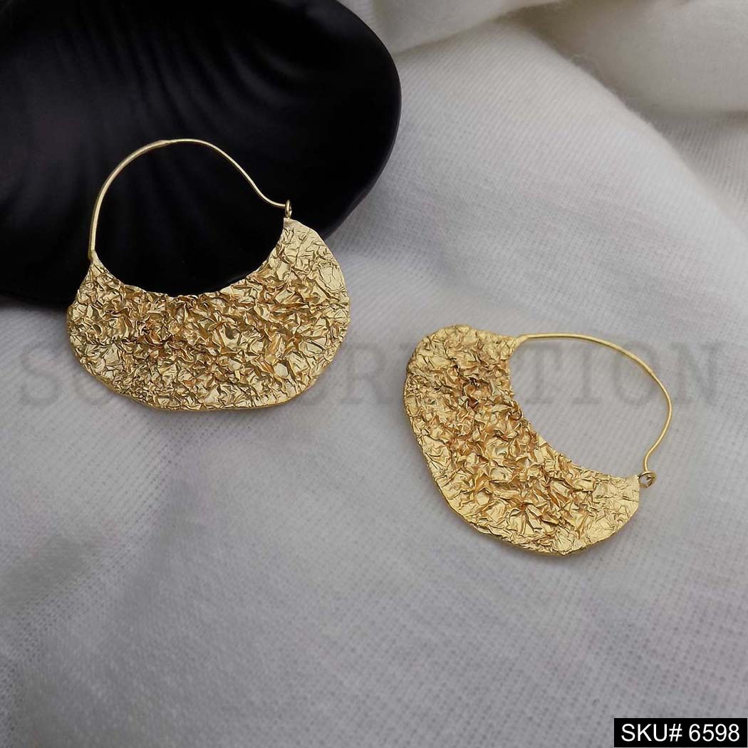 Gold plated Hammered Half Moon Hoops Earring SKU6598