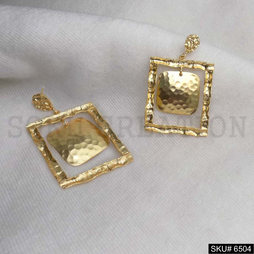 Gold plated Hammered Statement Drop and Dangle Earrings SKU6504