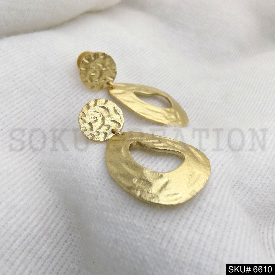 Gold plated Hammered Statement Handmade Unique Design of Drop and Dangle Earring SKU6610