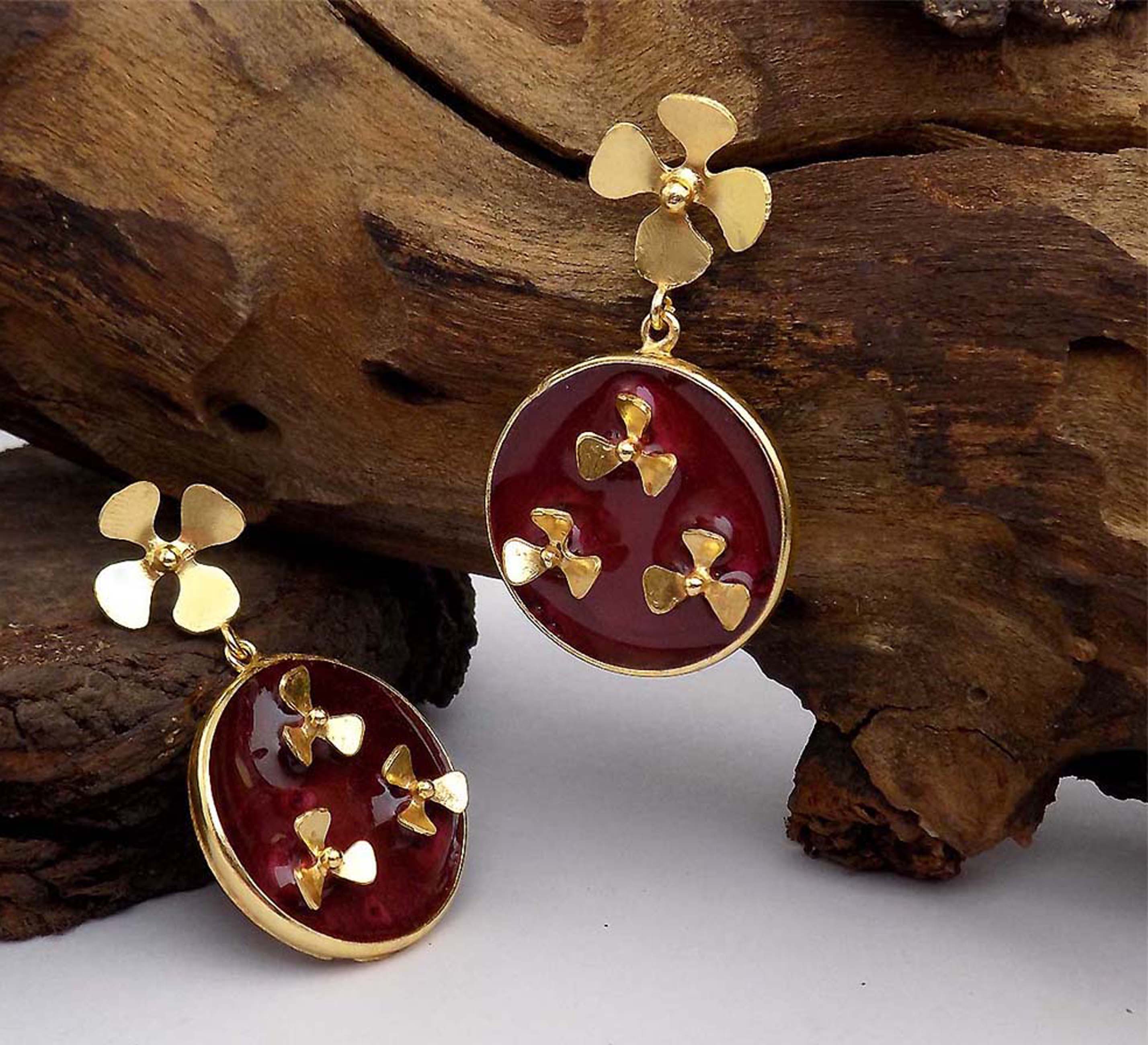 Gold plated Handmade Design Flower Drop and Dangle Earring SKU6058