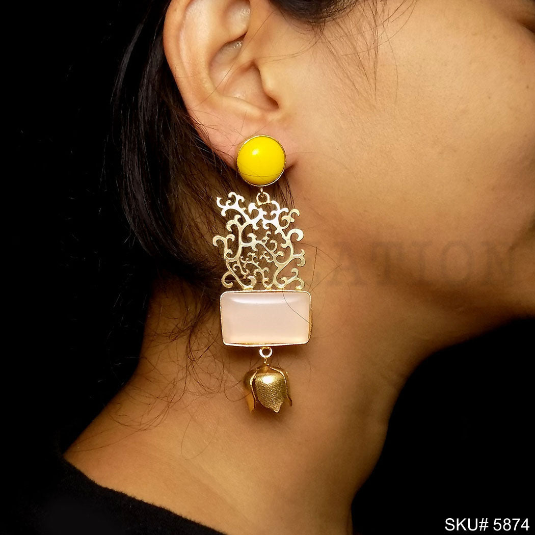 Gold plated Handmade Gemstone Drop and Dangle Earring SKU5874
