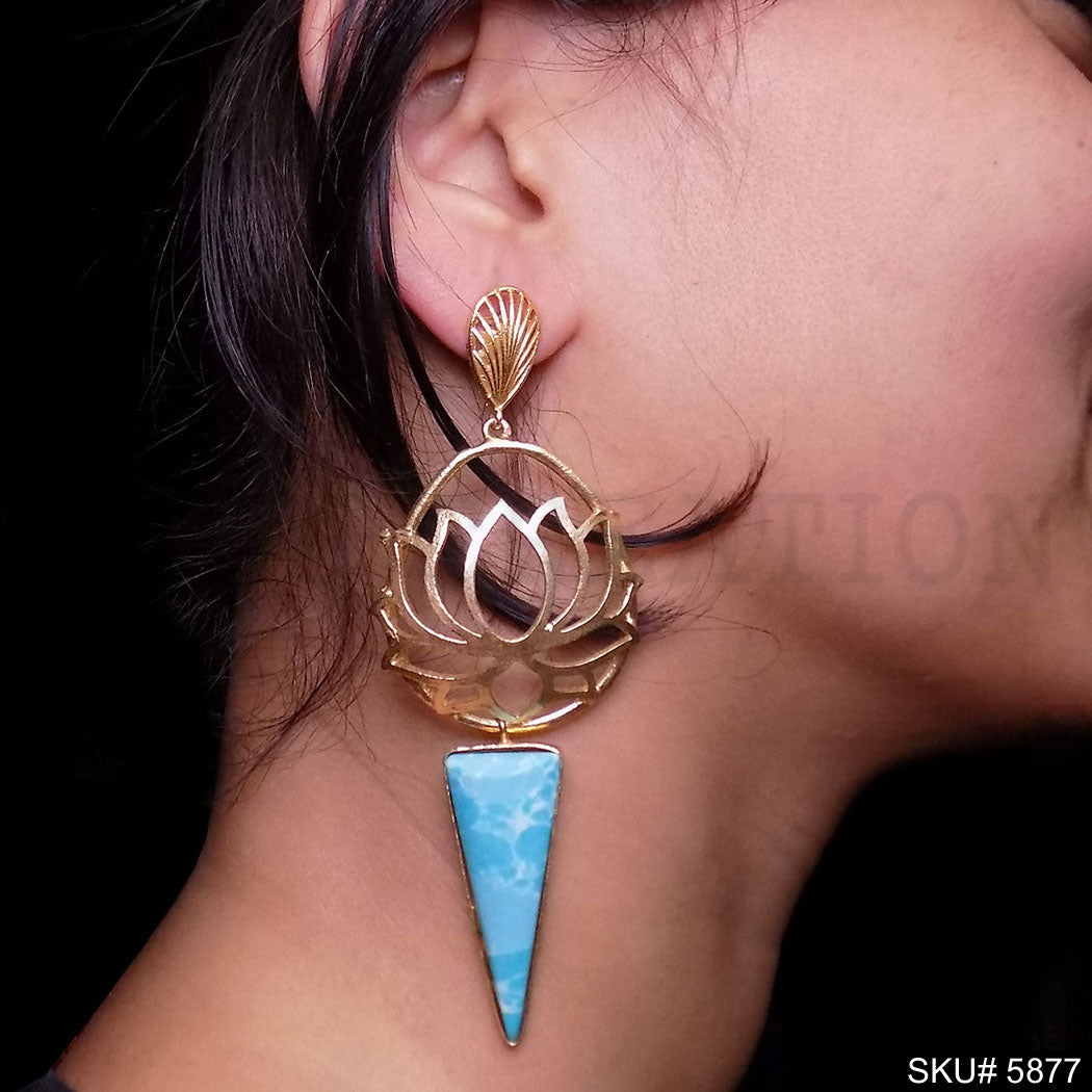 Gold plated Handmade Gemstone Lotus Style Drop and Dangle Earring SKU5877