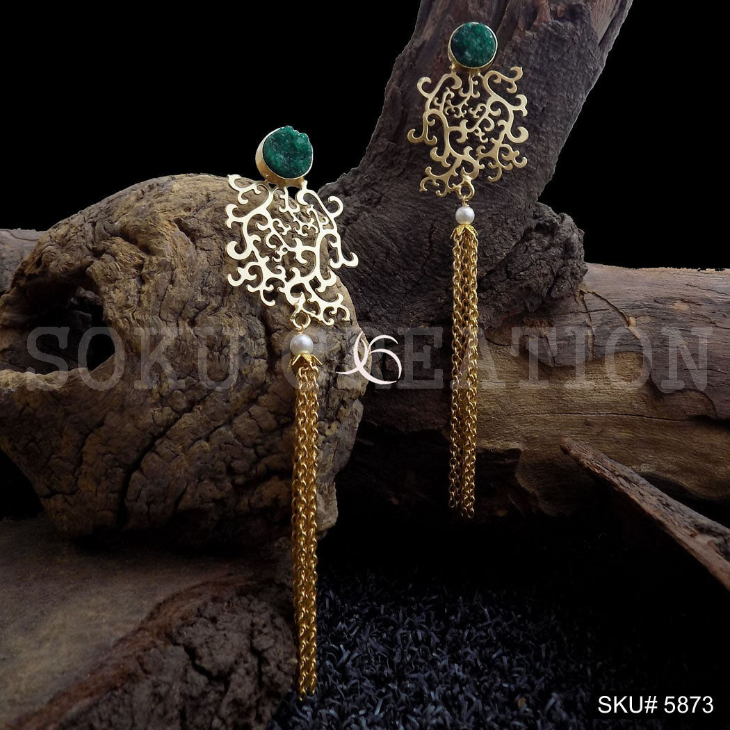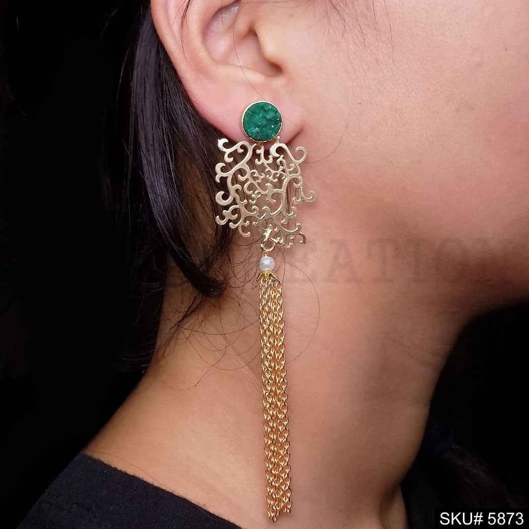 Gold plated Handmade Gemstone with Multi Chain Drop and Dangle Earring SKU5873
