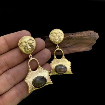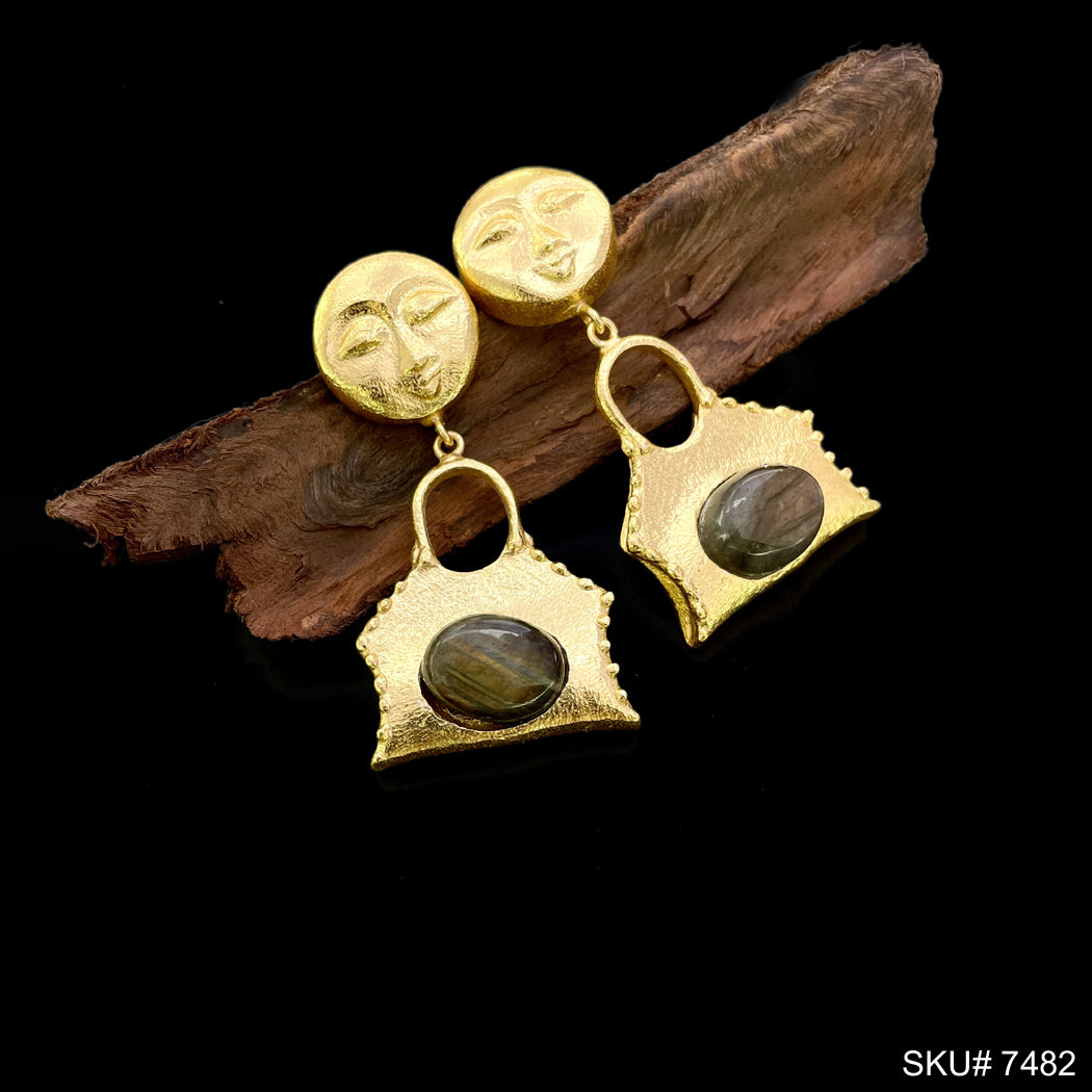 Gold plated Handmade Goddess Face Design Drop and Dangle Lock with Gemstone Earring SKU7482