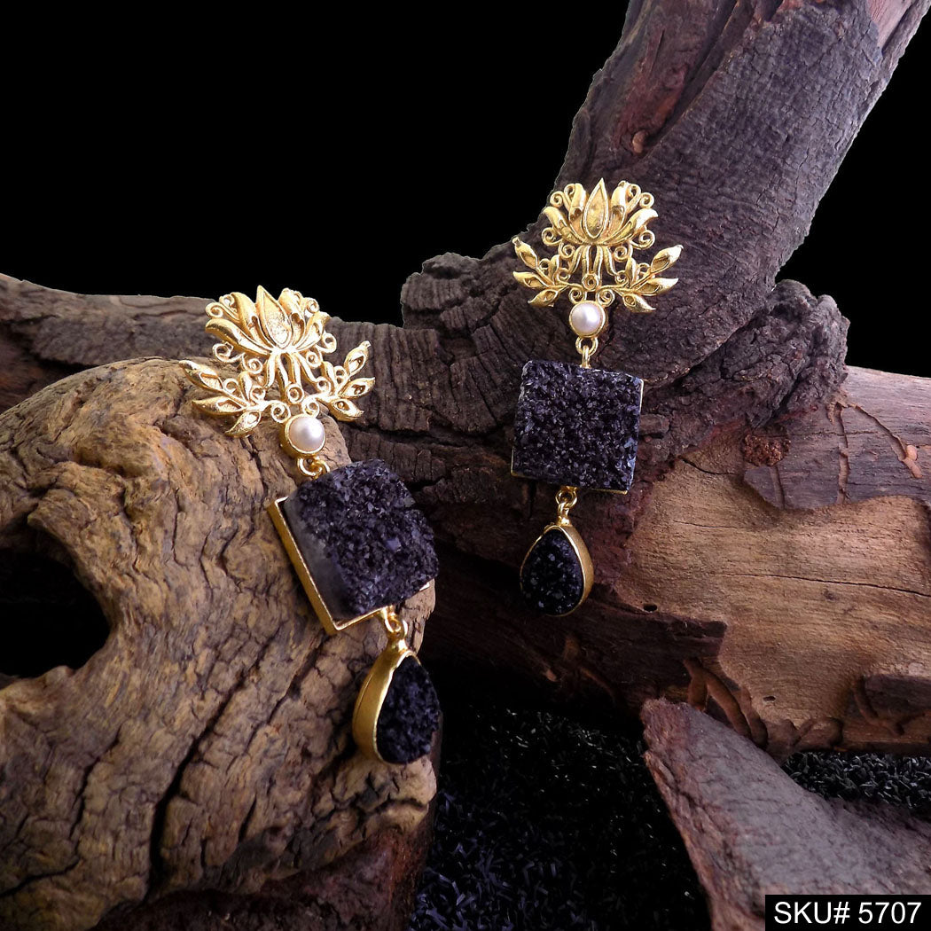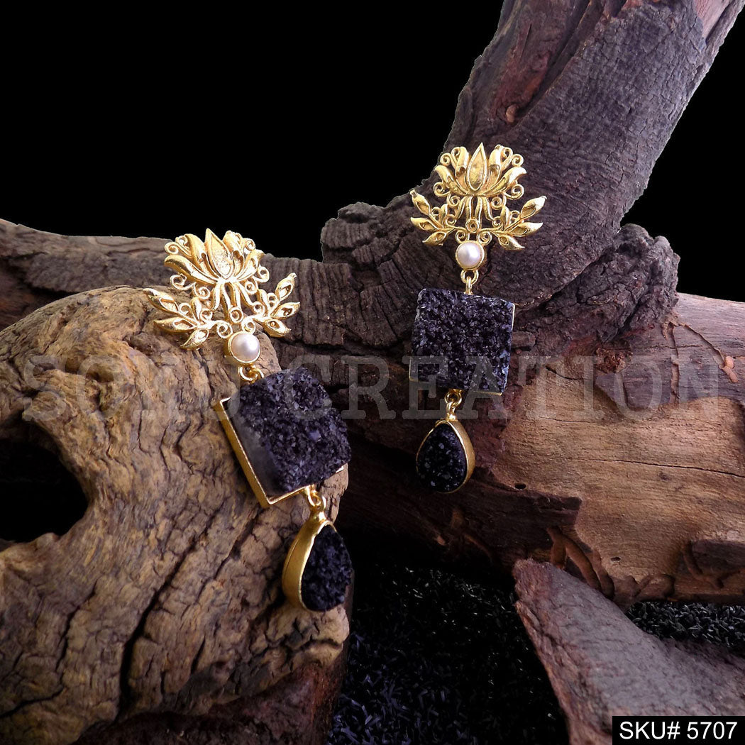 Gold plated Handmade Lotus Design Drop & Dangle Earring SKU5707