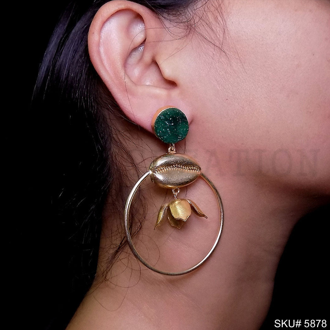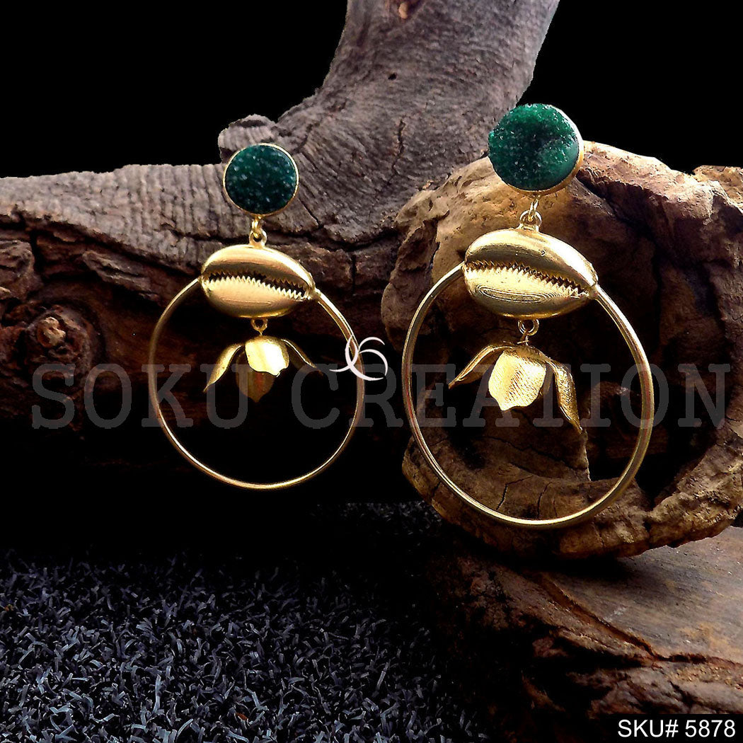 Gold plated Handmade Shell Style Drop and Dangle Earring SKU5878