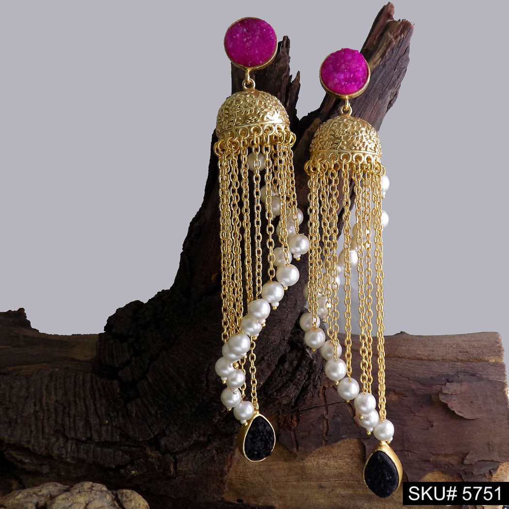 Gold plated Handmade Statement Drop and Dangle Designer Jhumki Earring SKU5751