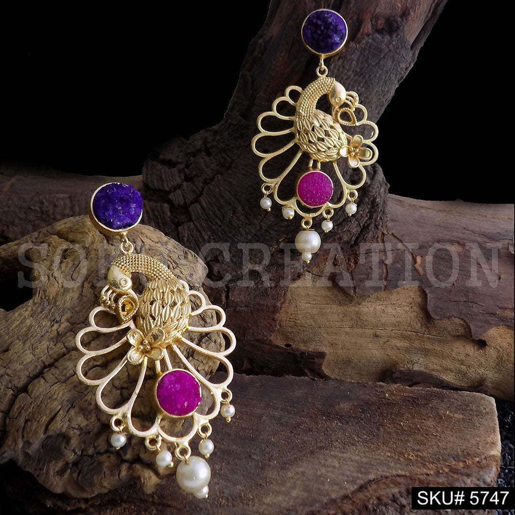 Gold plated Handmade Statement Peacock Design Drop and Dangle Earring SKU5747