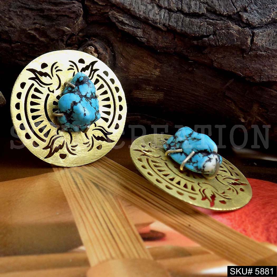 Gold plated Handmade Turquoise Big Stud Earring SKU5881