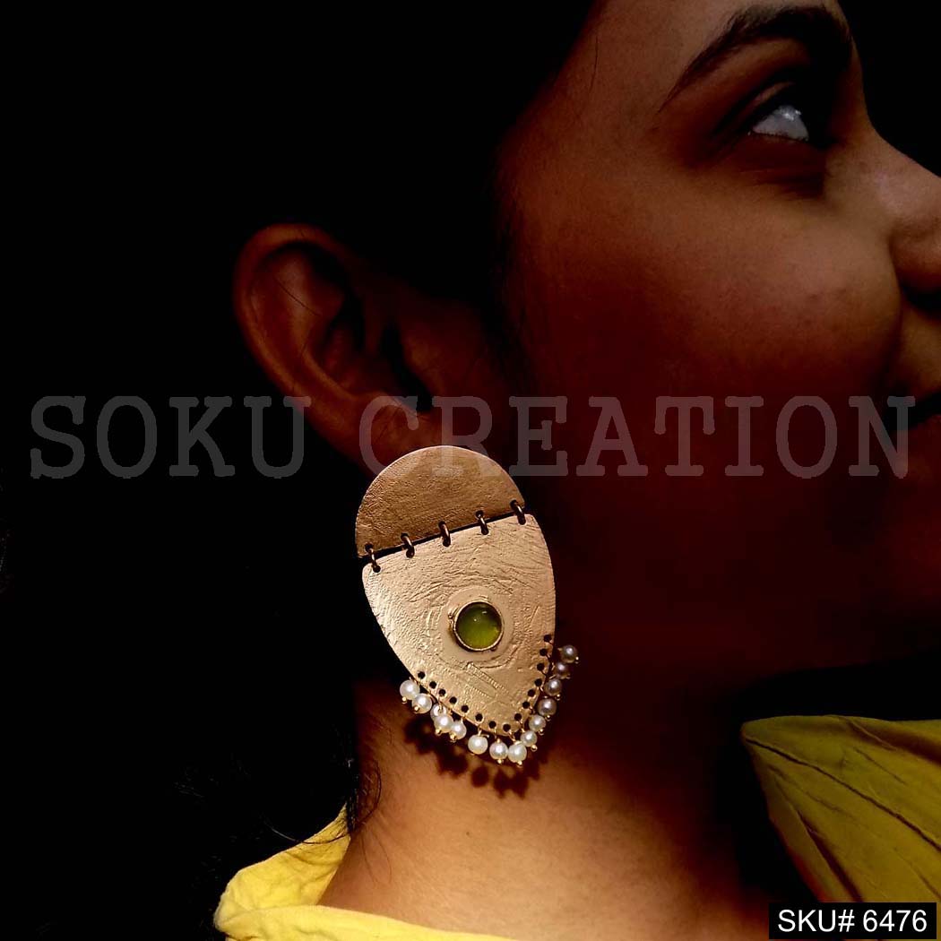Gold plated Green Gemstone Small Pearls of Broad Drop and Dangle Earrings SKU6476