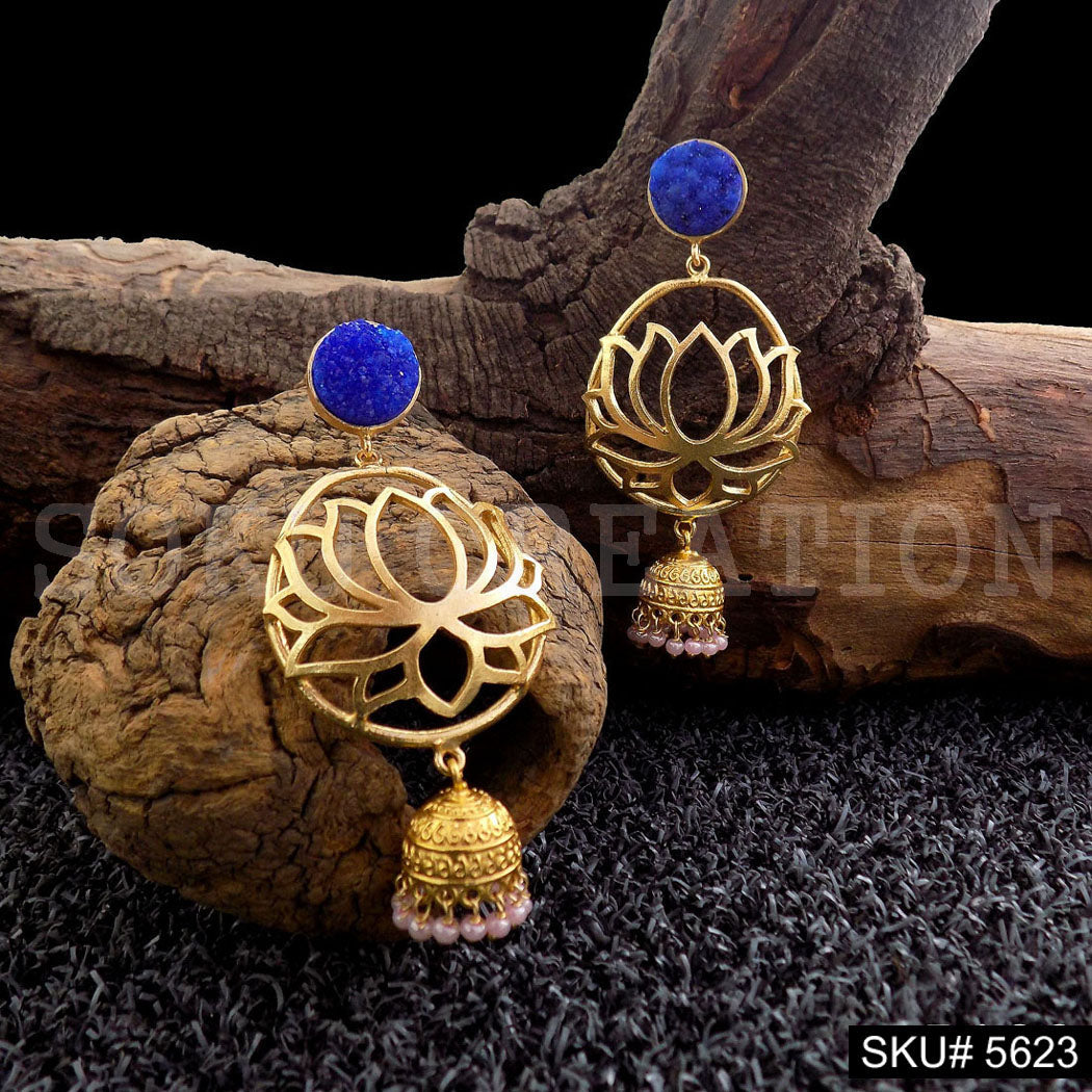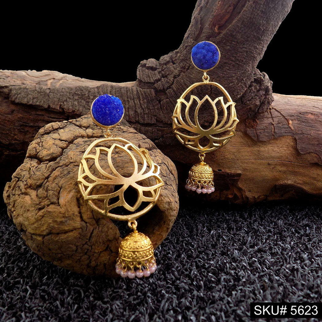 Gold plated Lotus Style Drop & Dangle Jhumki Earring SKU5623