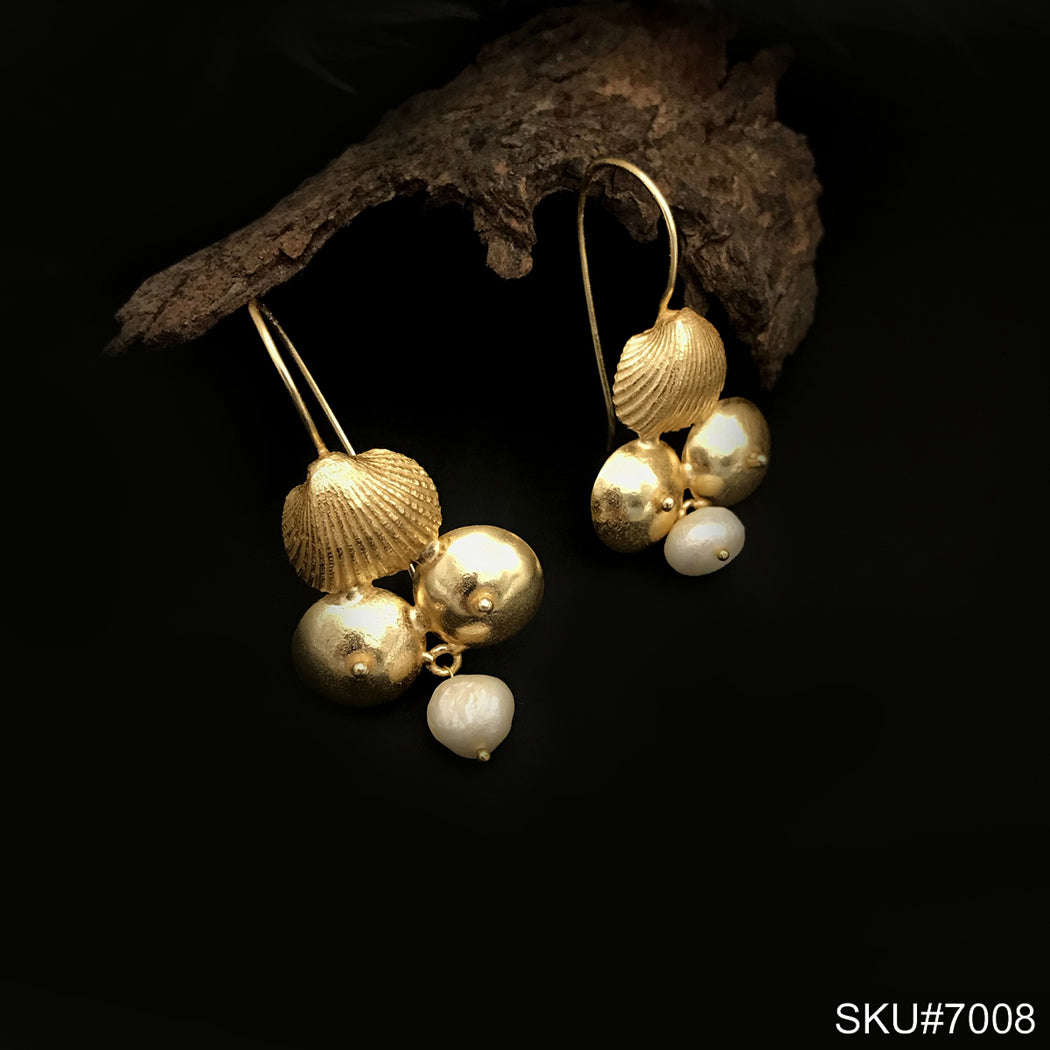 Gold plated Pearl Shell Statement Style Ear Wire Earring SKU7008