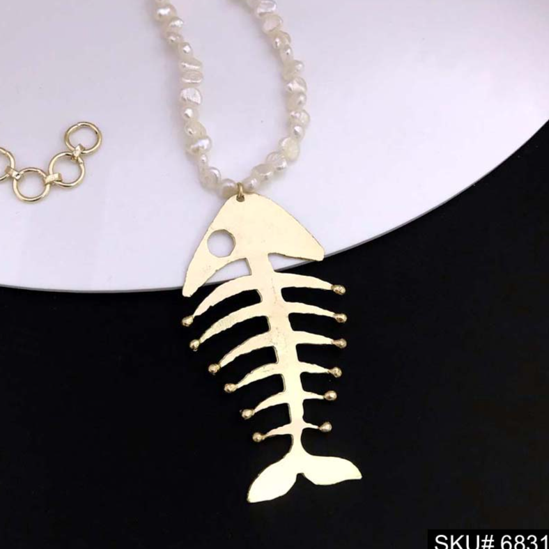 Fish Skeletal Necklace With Pearl Beads SKU6831