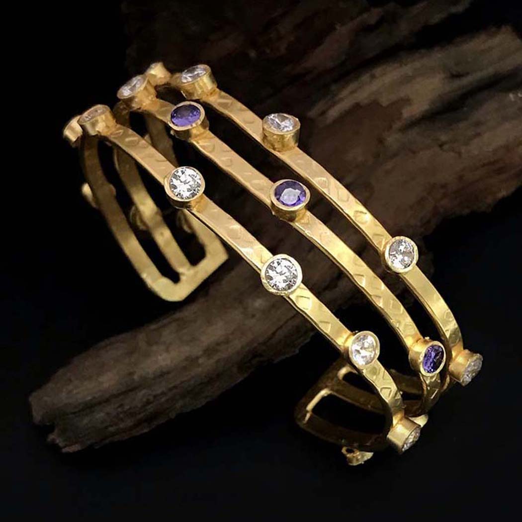 Gold Plated Plain Statement Multi color Stone on Cuff SKU6952