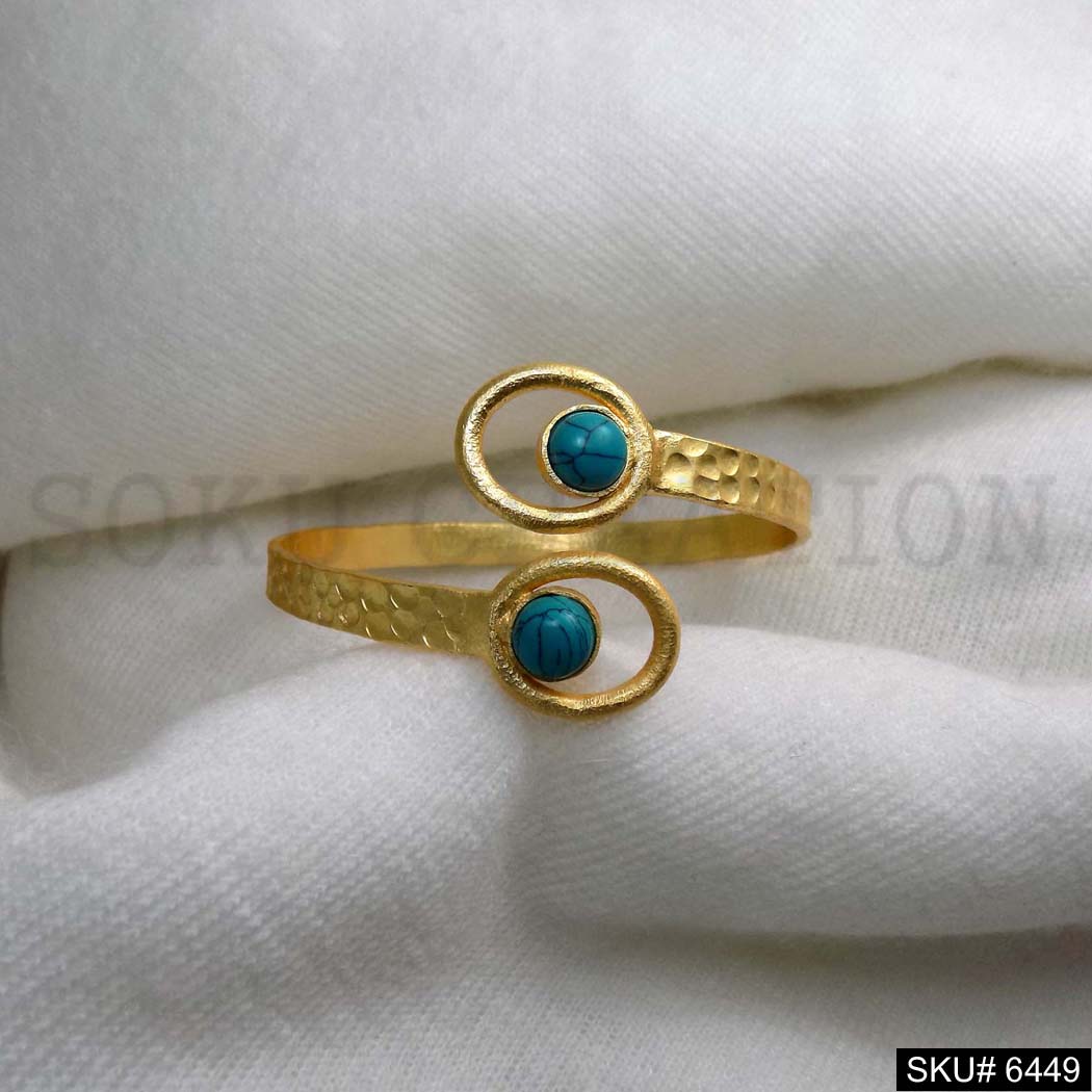 Gold Plated Round Hammered Turquoise Stone Cuff SKU6449