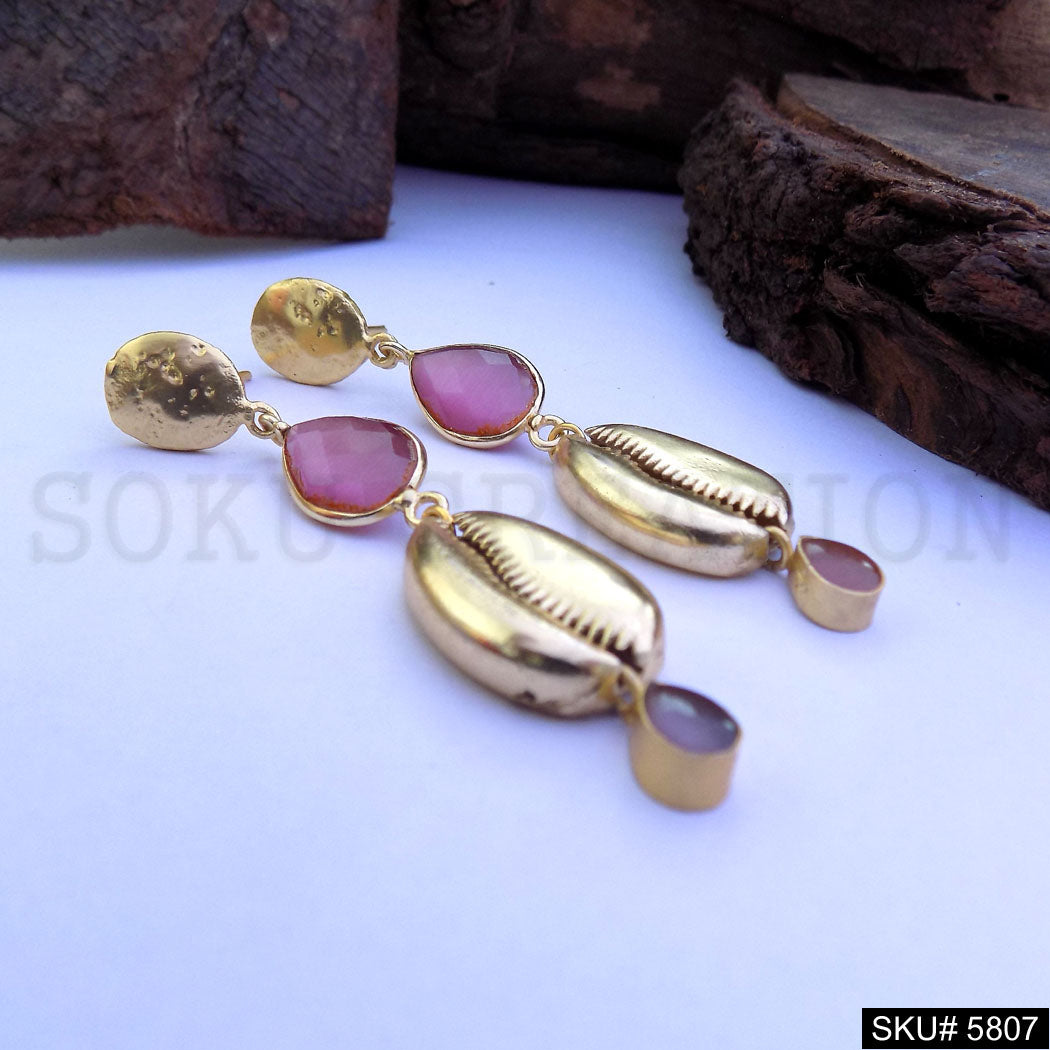 Gold plated Shell Gemstone Designer Drop and Dangle Earring SKU5807