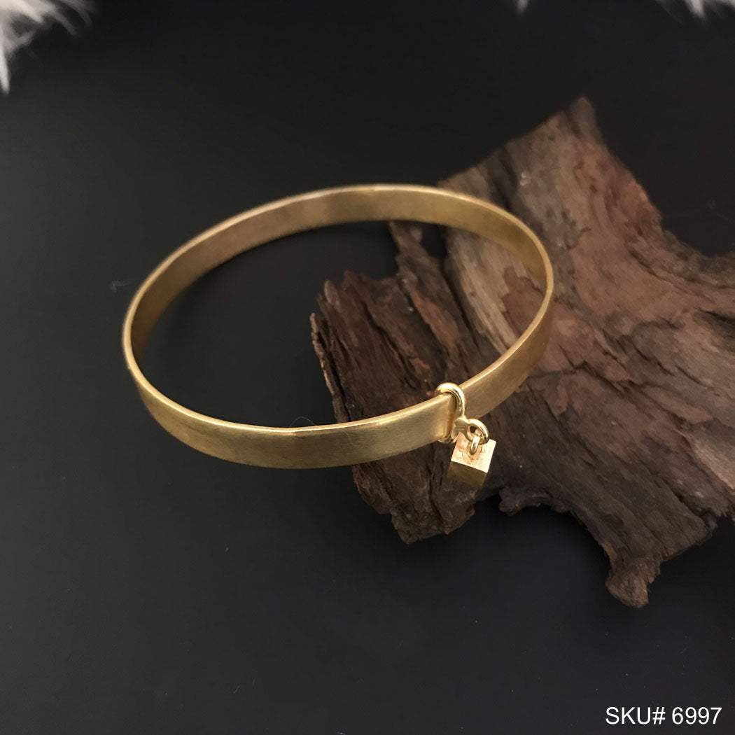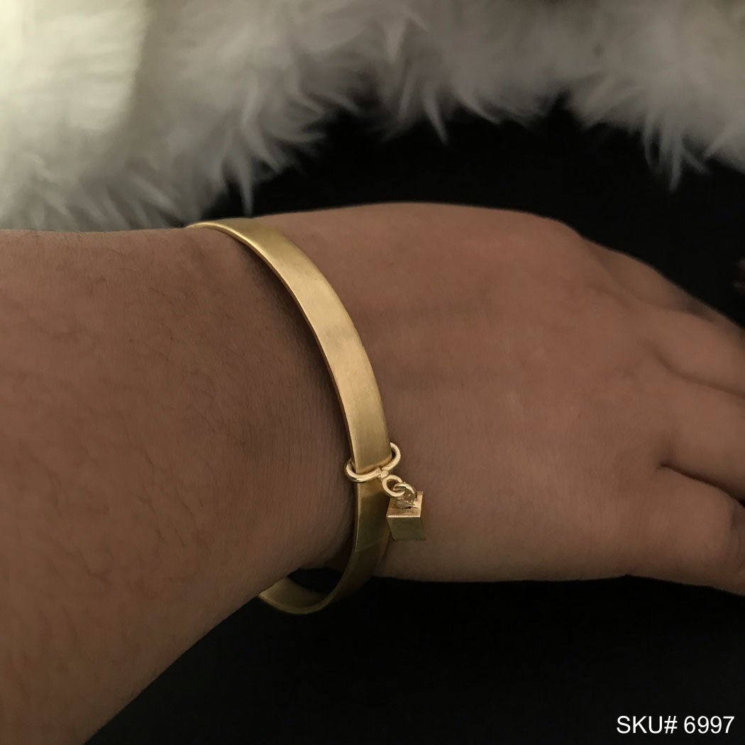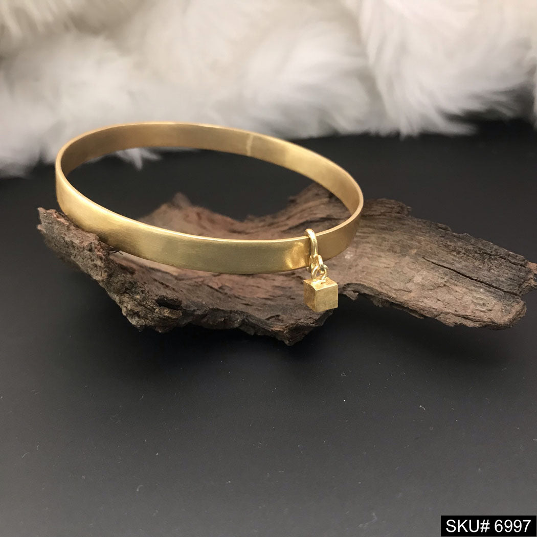 Gold Plated Simple Design of Bangle With Cube Charm SKU6997
