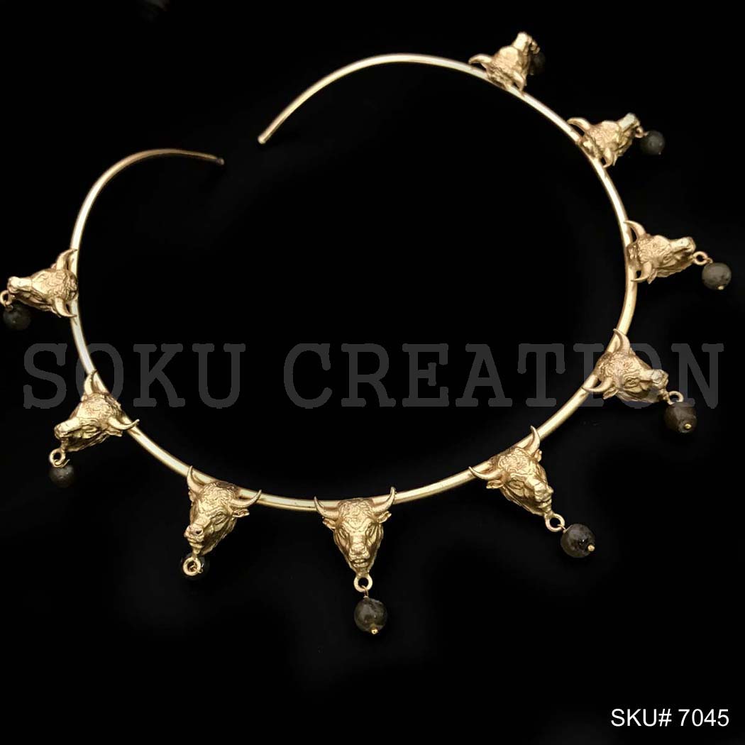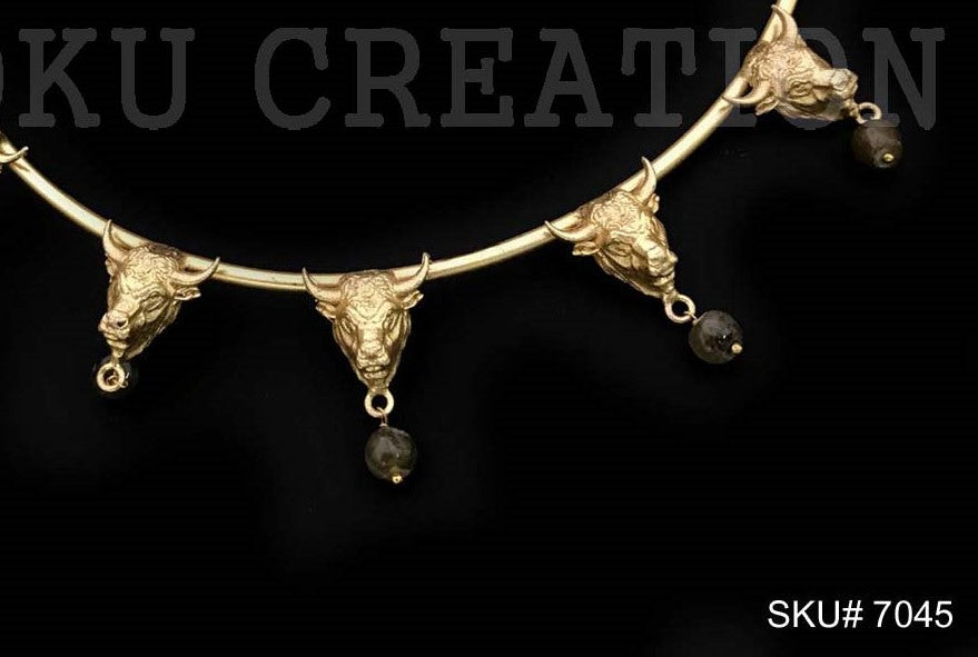 Gold Plated Simple Design With Bull Black Stone on Choker SKU7045